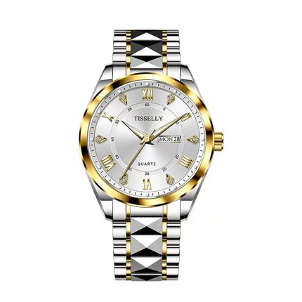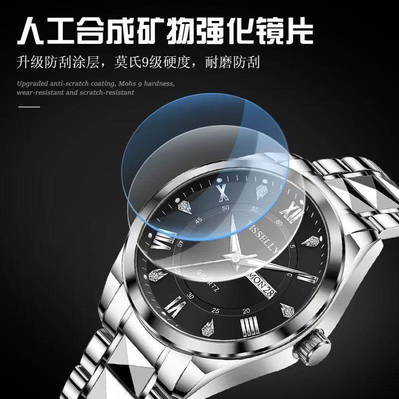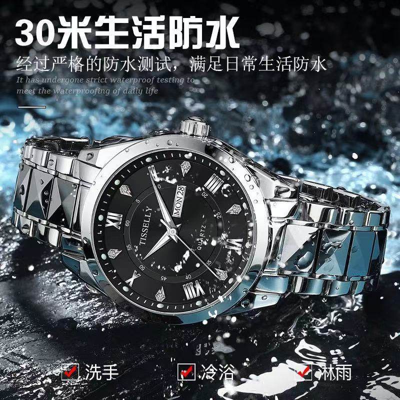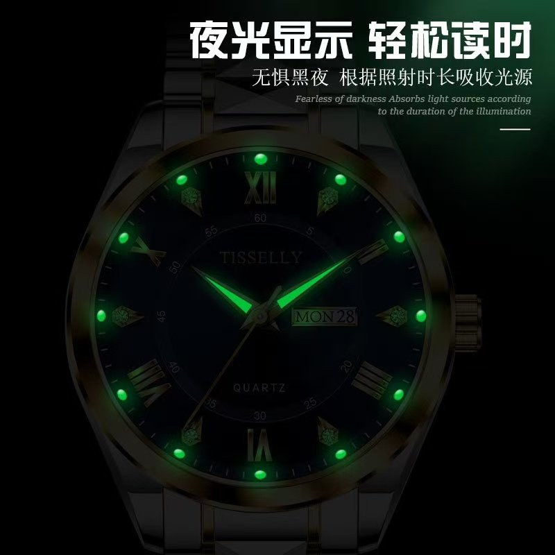 全自动石英手表防水男士青少中老年人学生商务超薄款钢带腕表夜光