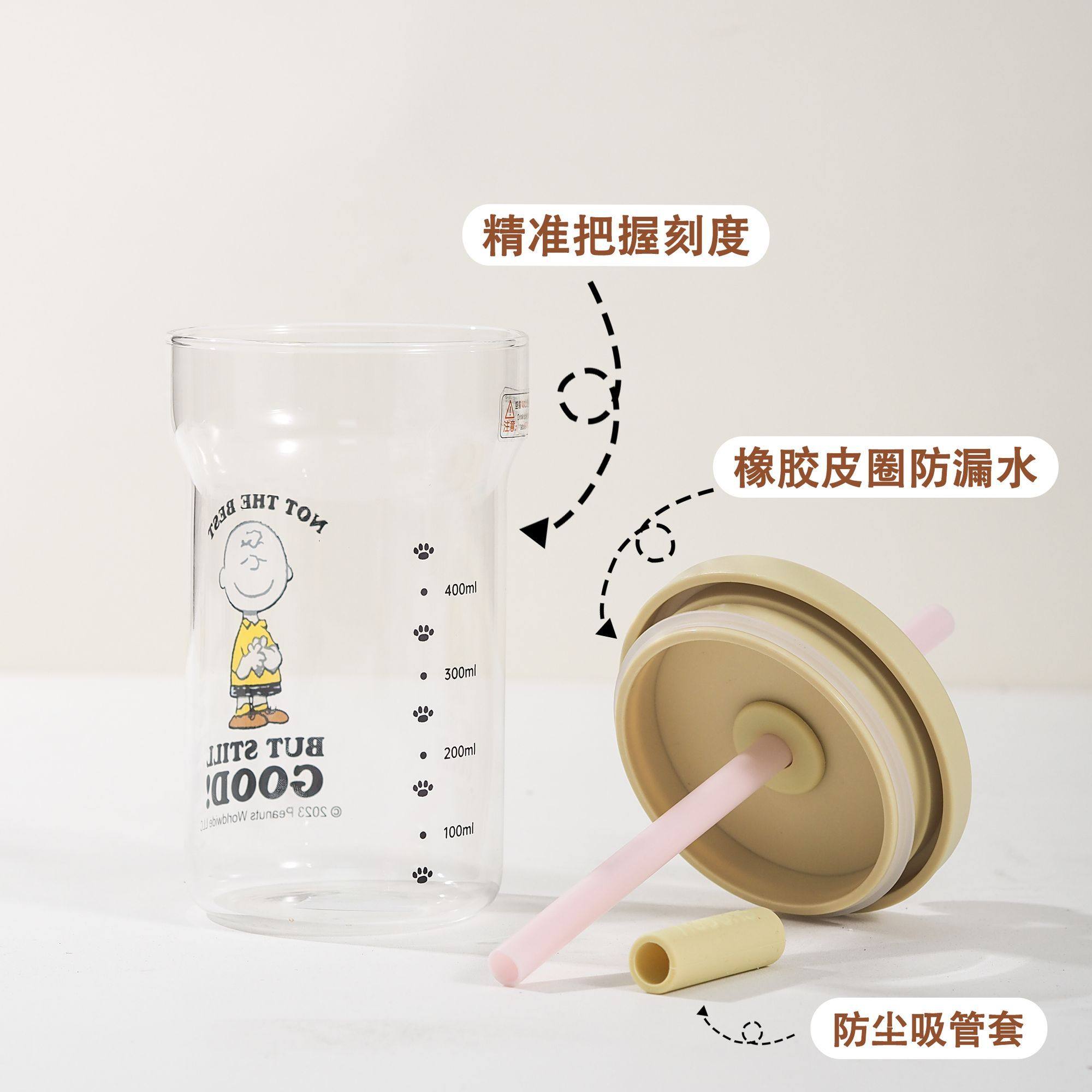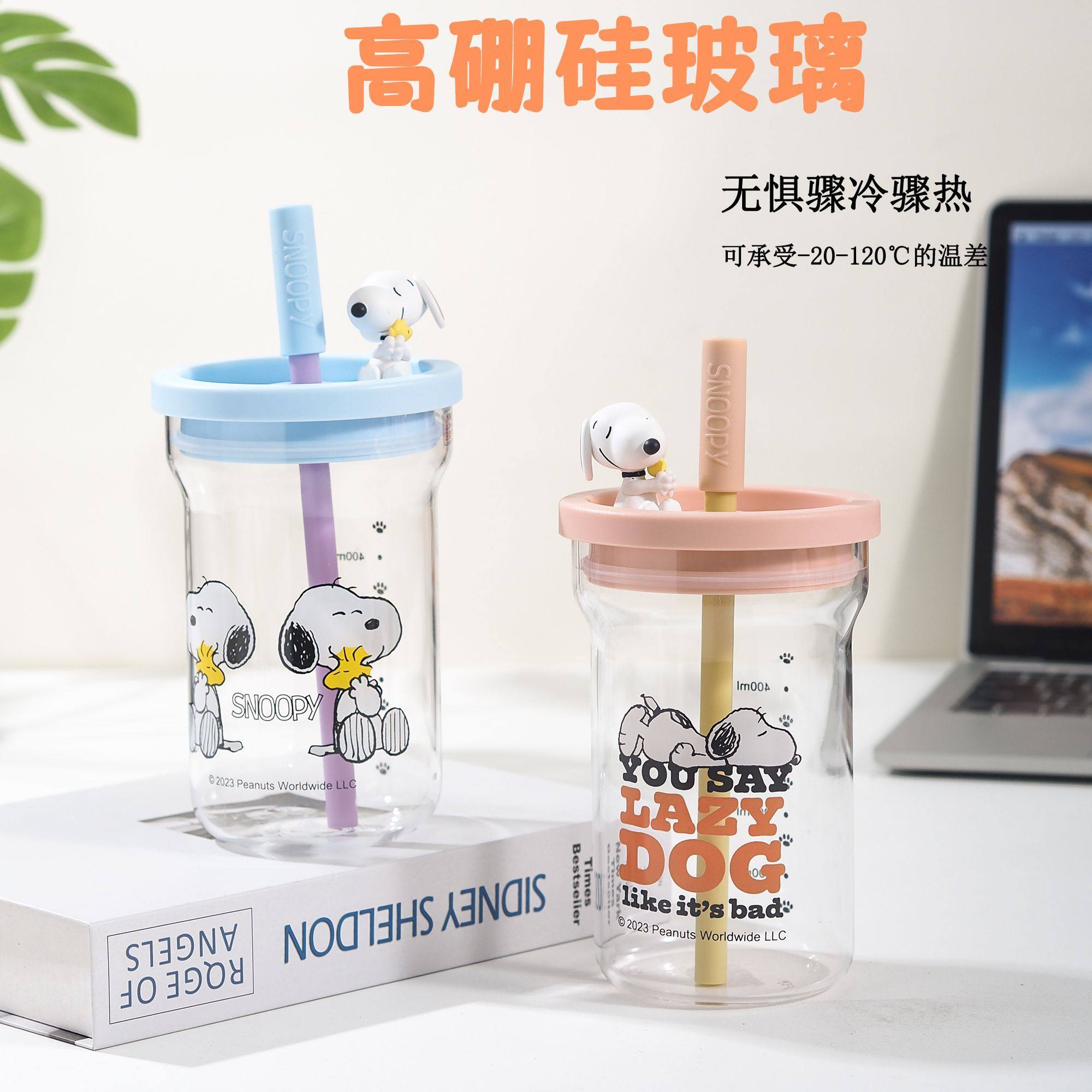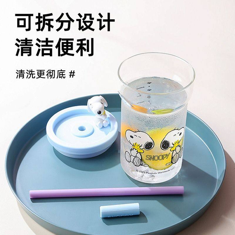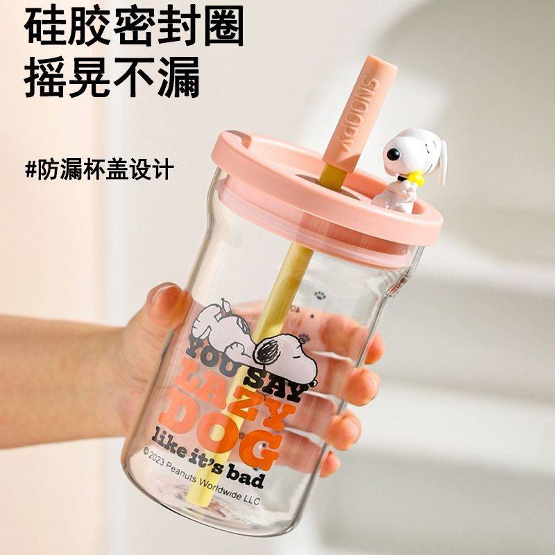 史努比吸管玻璃杯高硼硅可爱高颜值卡通透明儿童学生上学专用水杯