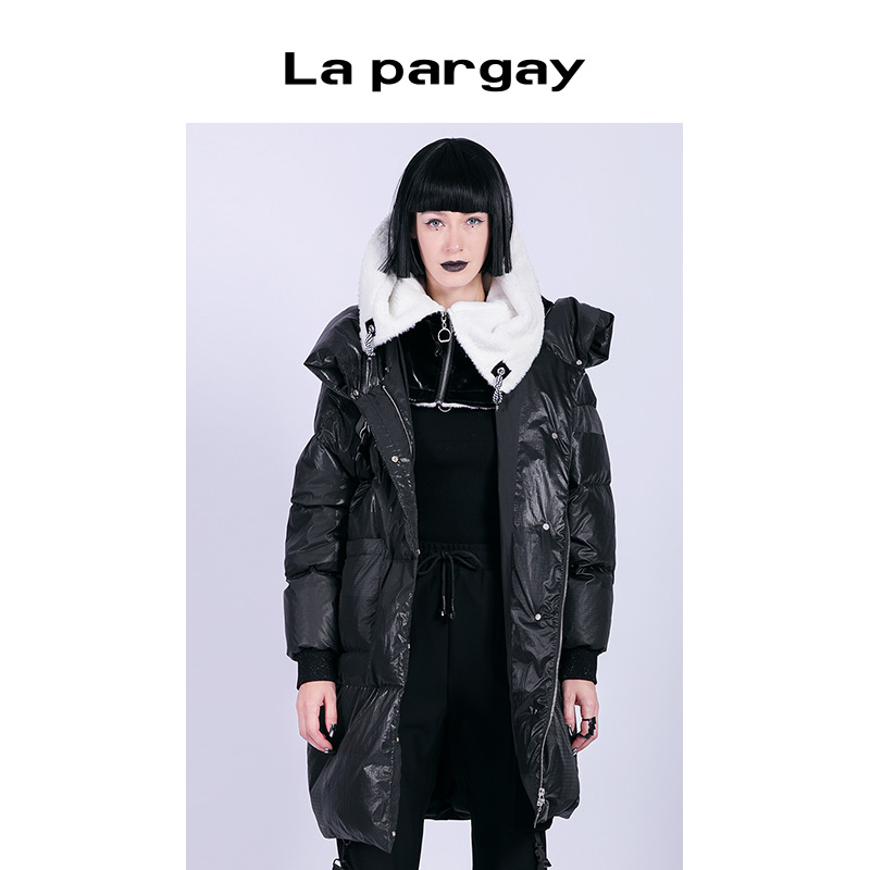 Lapargay纳帕佳2023秋冬新款保暖外套加厚连帽羽绒服女中长款潮牌