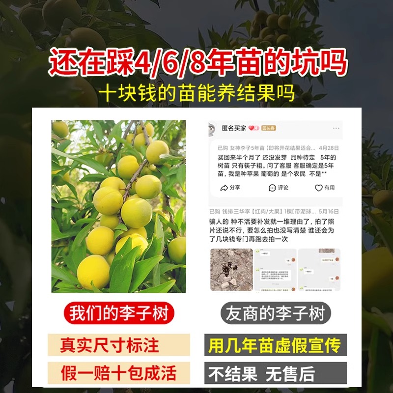 蜂糖李子树苗三华脆李子苗新品种大红袍特大号西梅苗南方北方种植