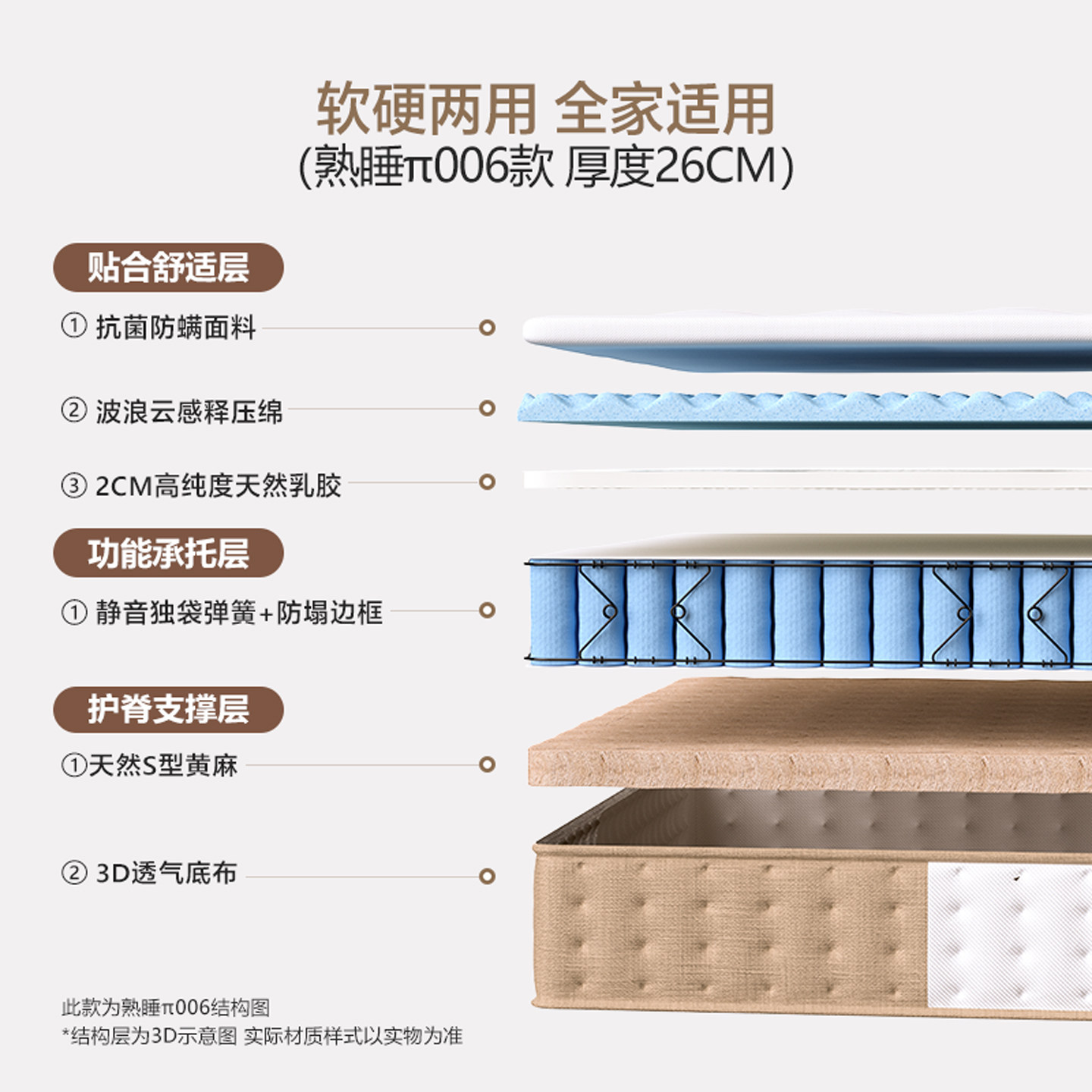 希尔顿酒店专用乳胶床垫席梦思独立弹簧家用椰棕偏硬黄麻双人定制