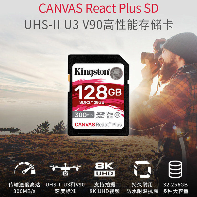 金士顿128g内存卡64g单反相机32g摄像机256g高速SD卡R7/zve1/A7M4