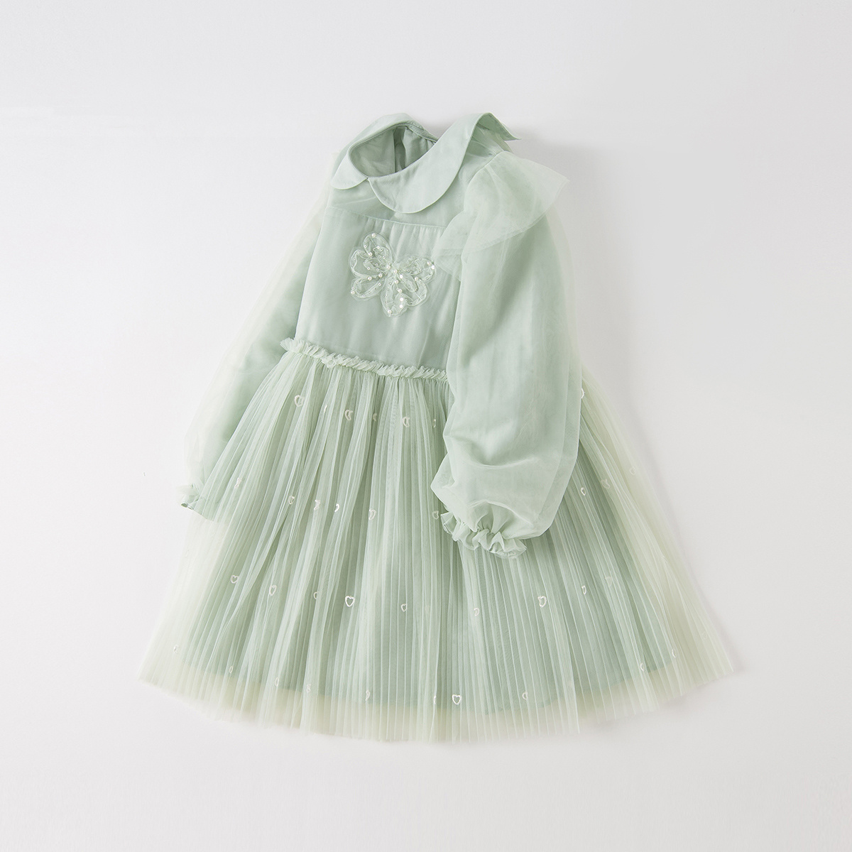 戴维贝拉女童网纱连衣裙秋装儿童裙子新款女孩大童甜美公主裙童装