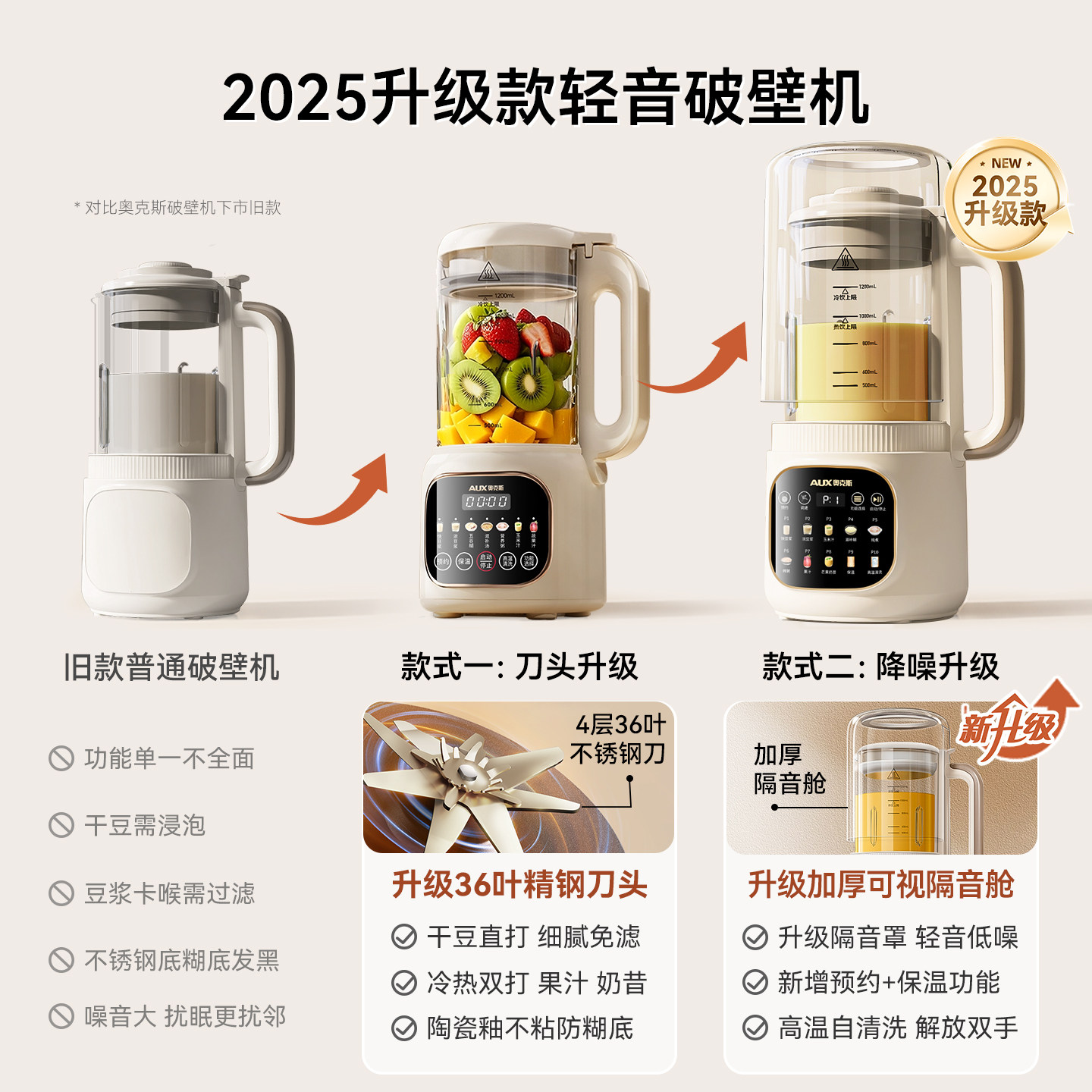奥克斯破壁机家用小型豆浆机全自动静低音无渣一体榨汁机2025新款