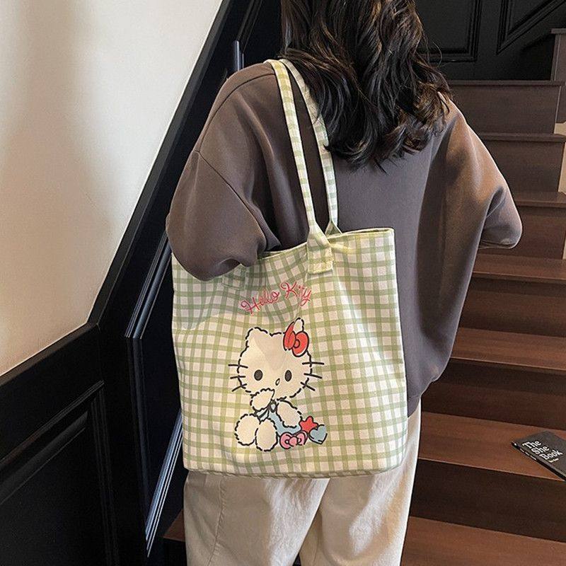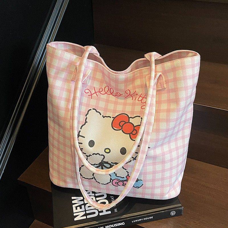 可爱kitty手提袋大容量时尚卡通包女可爱百搭单肩上课通勤帆布包