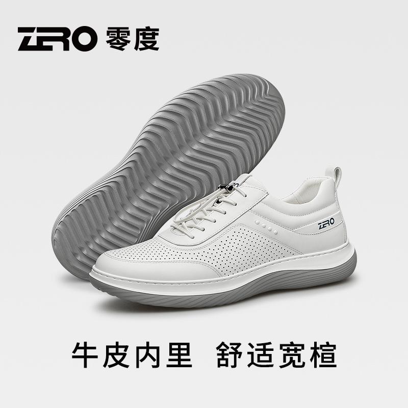 [商场同款]ZRO零度男鞋25夏季新款真皮运动休闲鞋冲孔透气小白鞋