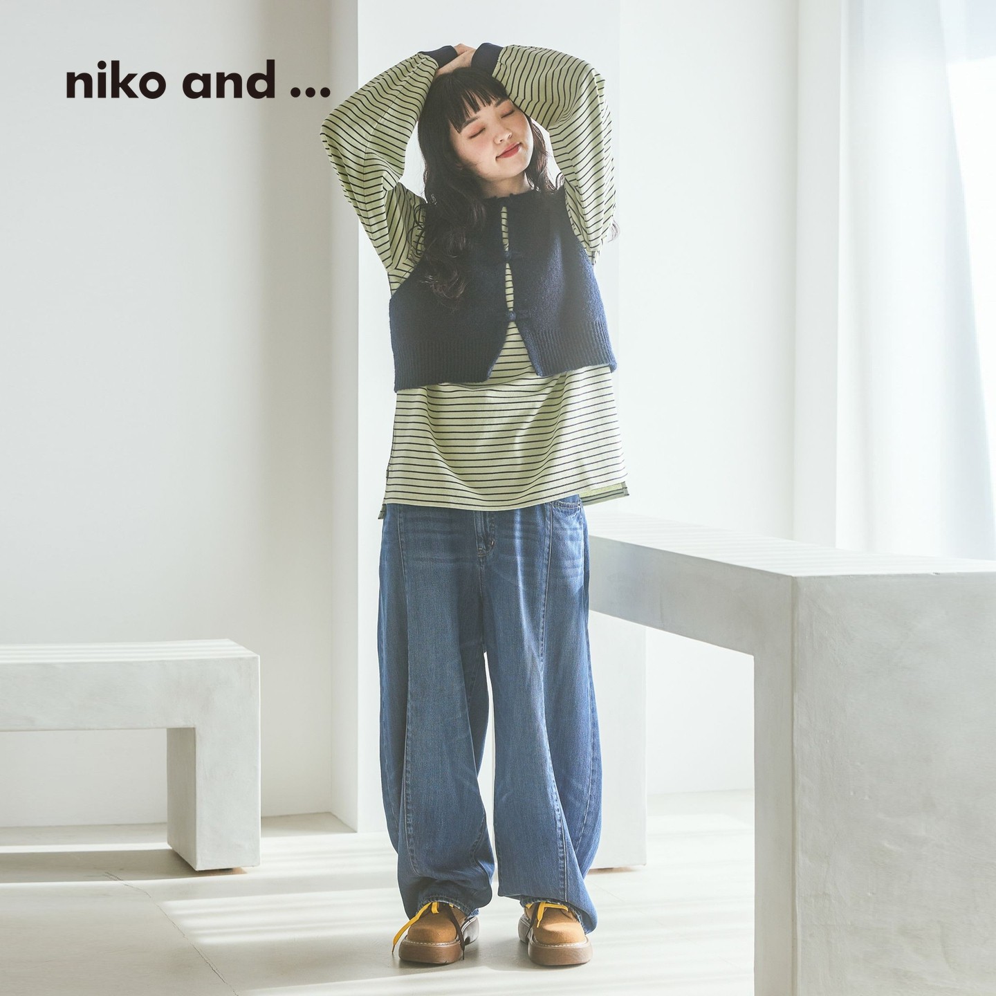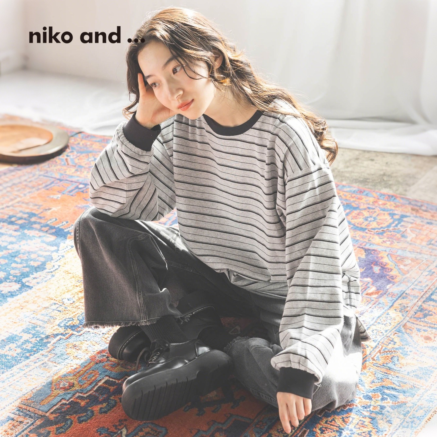 niko and ...T恤女2026春季新款条纹落肩棉质长袖上衣612978