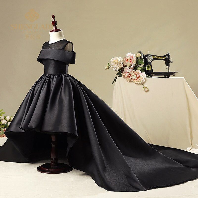 儿童礼服裙女童黑色拖尾公主裙大童女孩主持人走秀高端洋气演出服