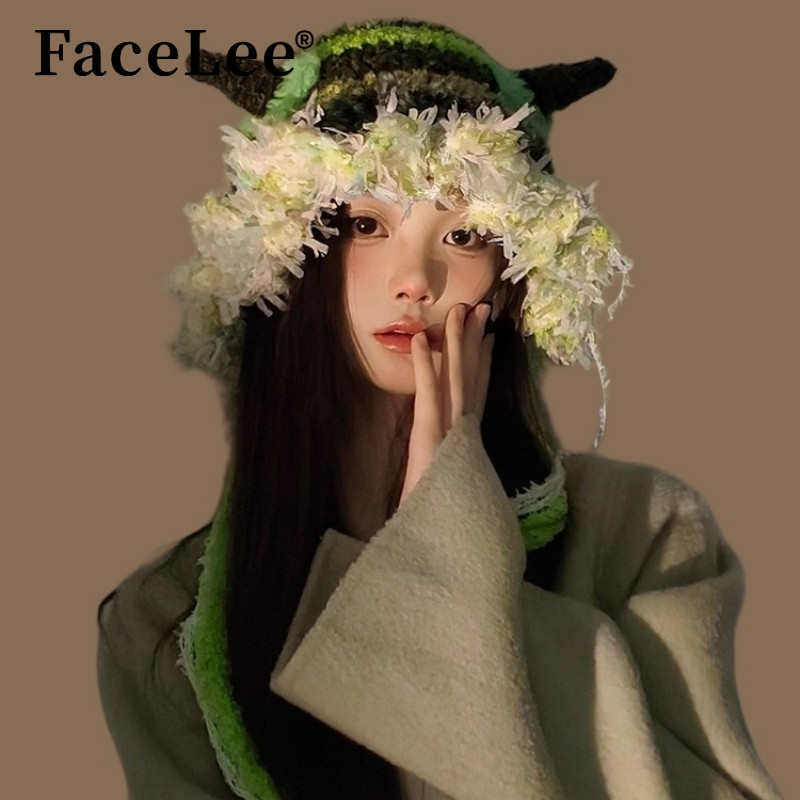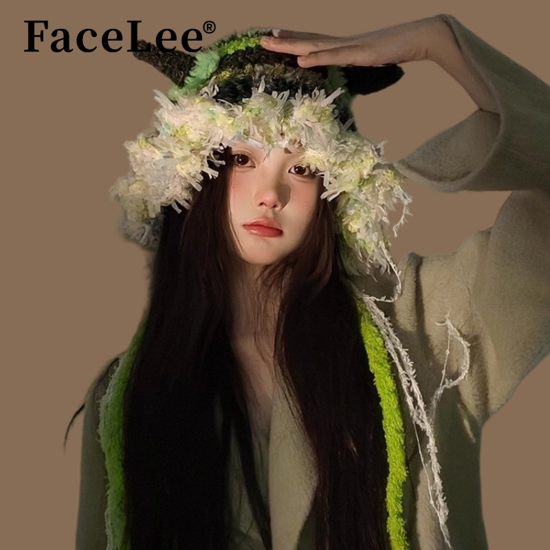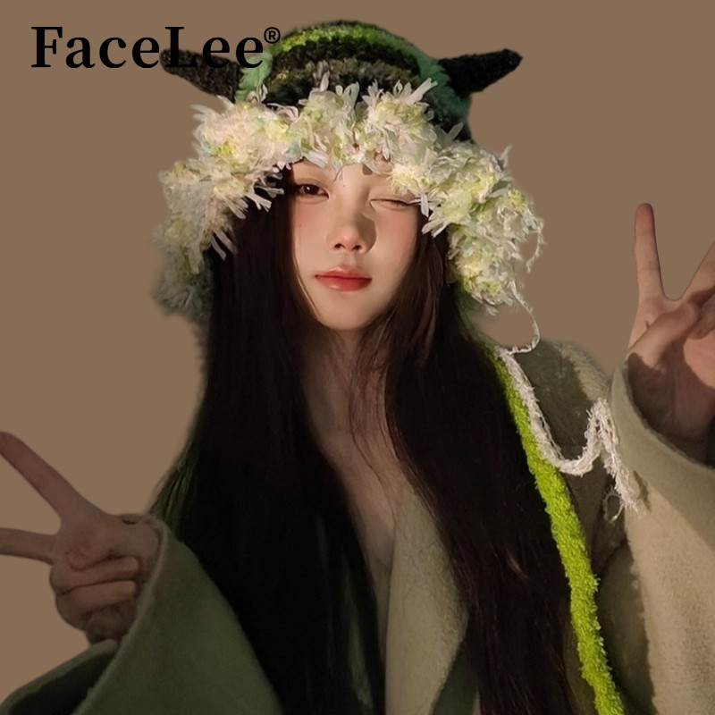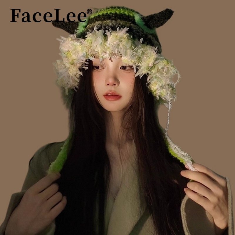 FaceLee日本设计师联名款小怪兽帽子2025秋冬少女风多巴胺甜系绿