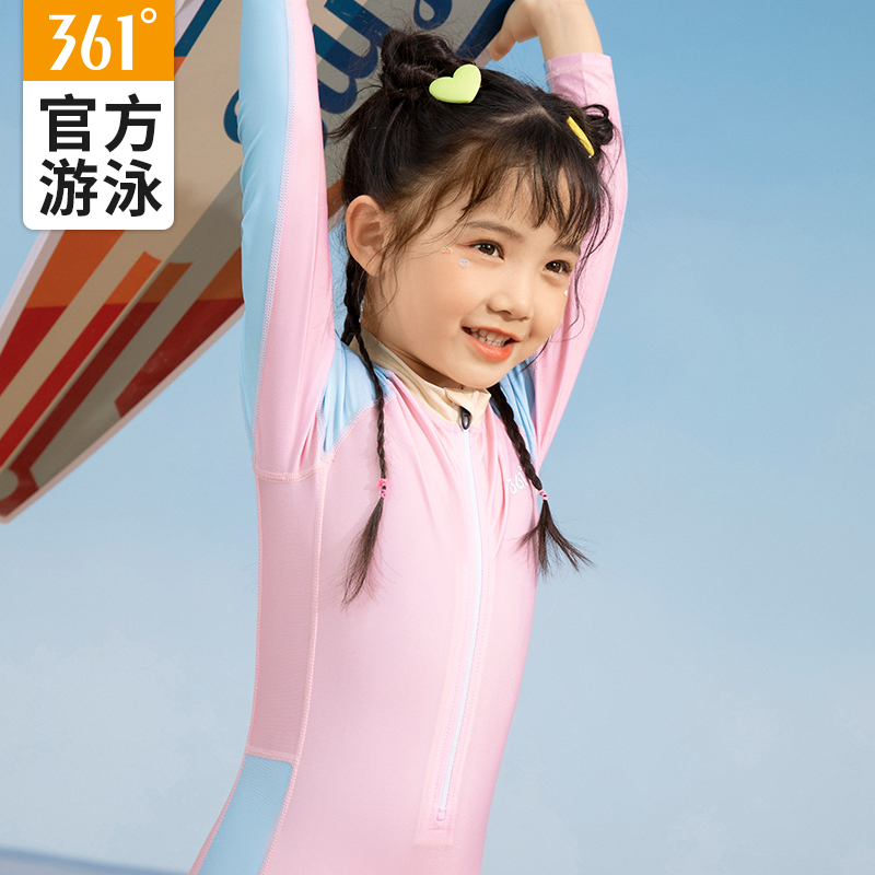 361儿童泳衣女孩女童连体宝宝中大童长袖保暖儿童游泳衣