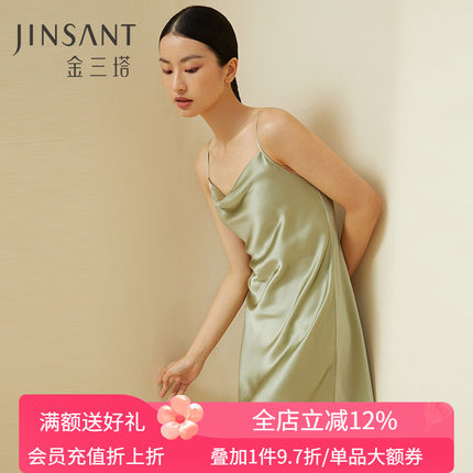 金三塔重磅真丝睡裙性感荡领100%桑蚕丝吊带睡衣女丝绸纯欲风新款