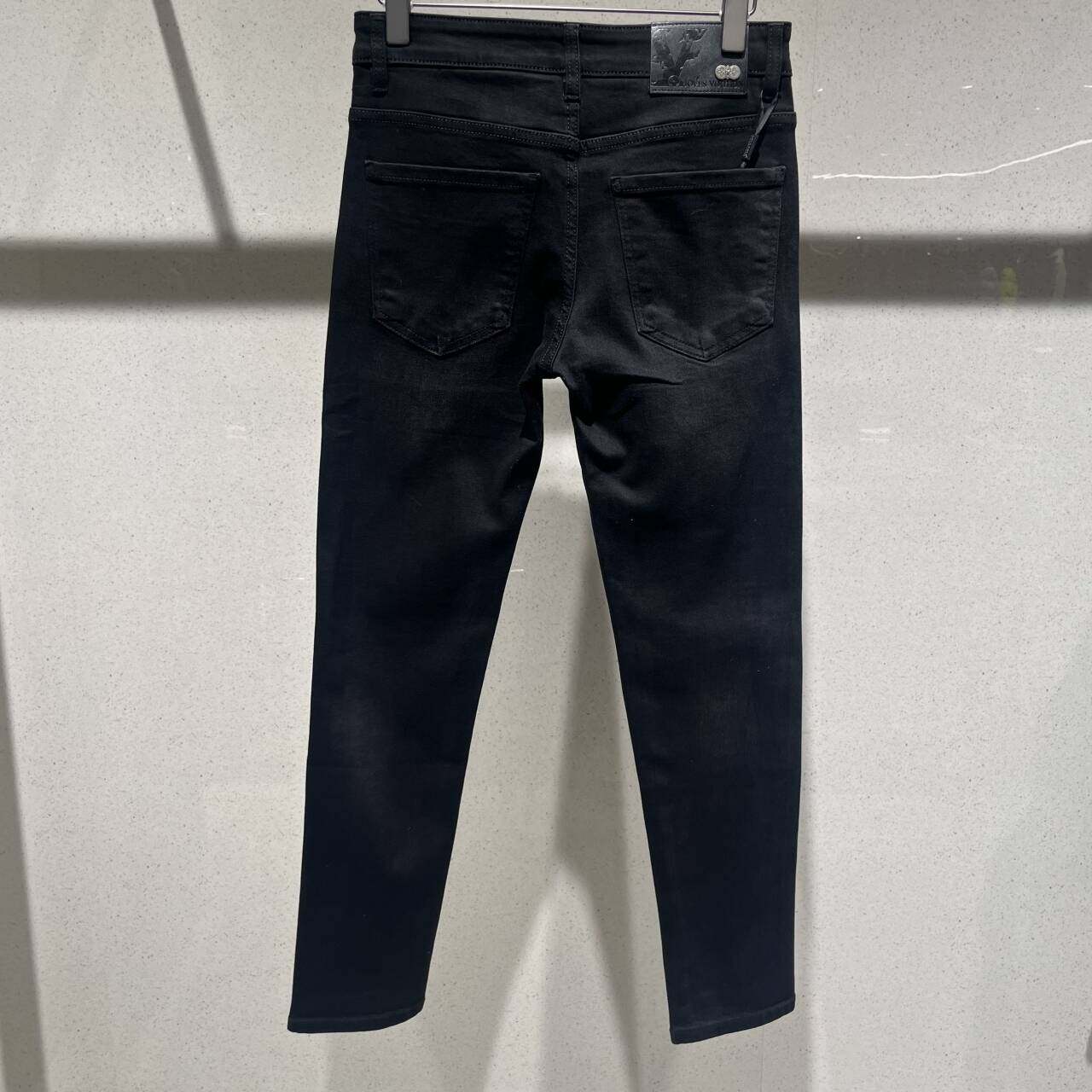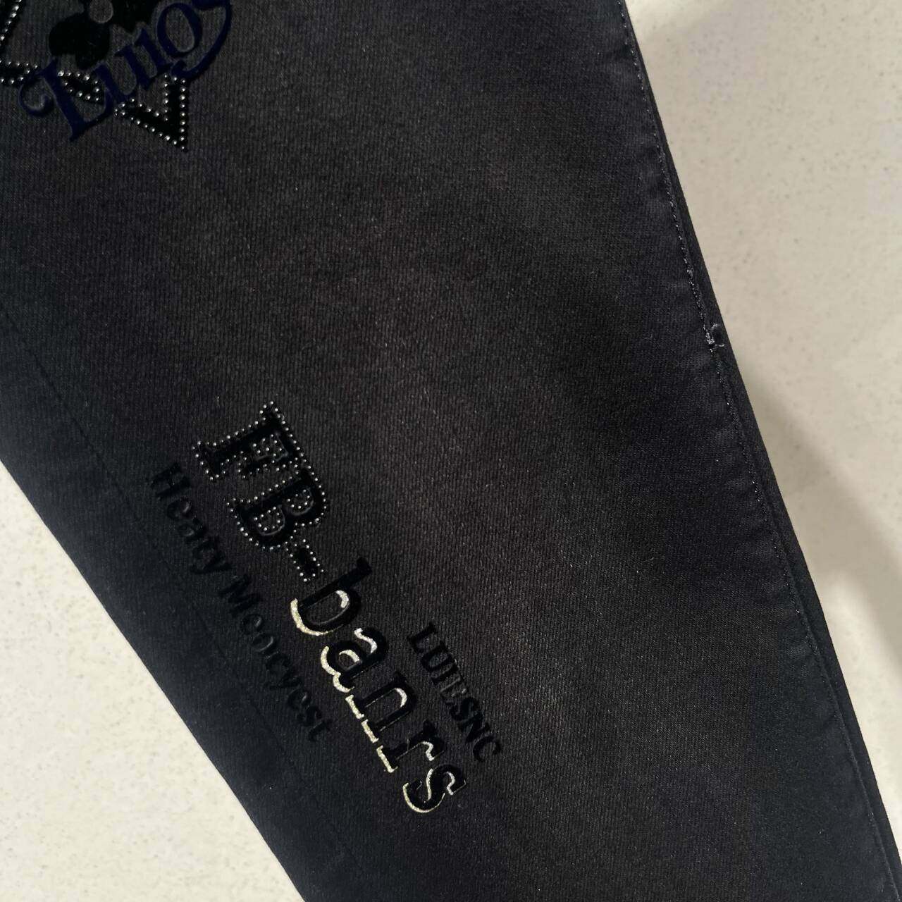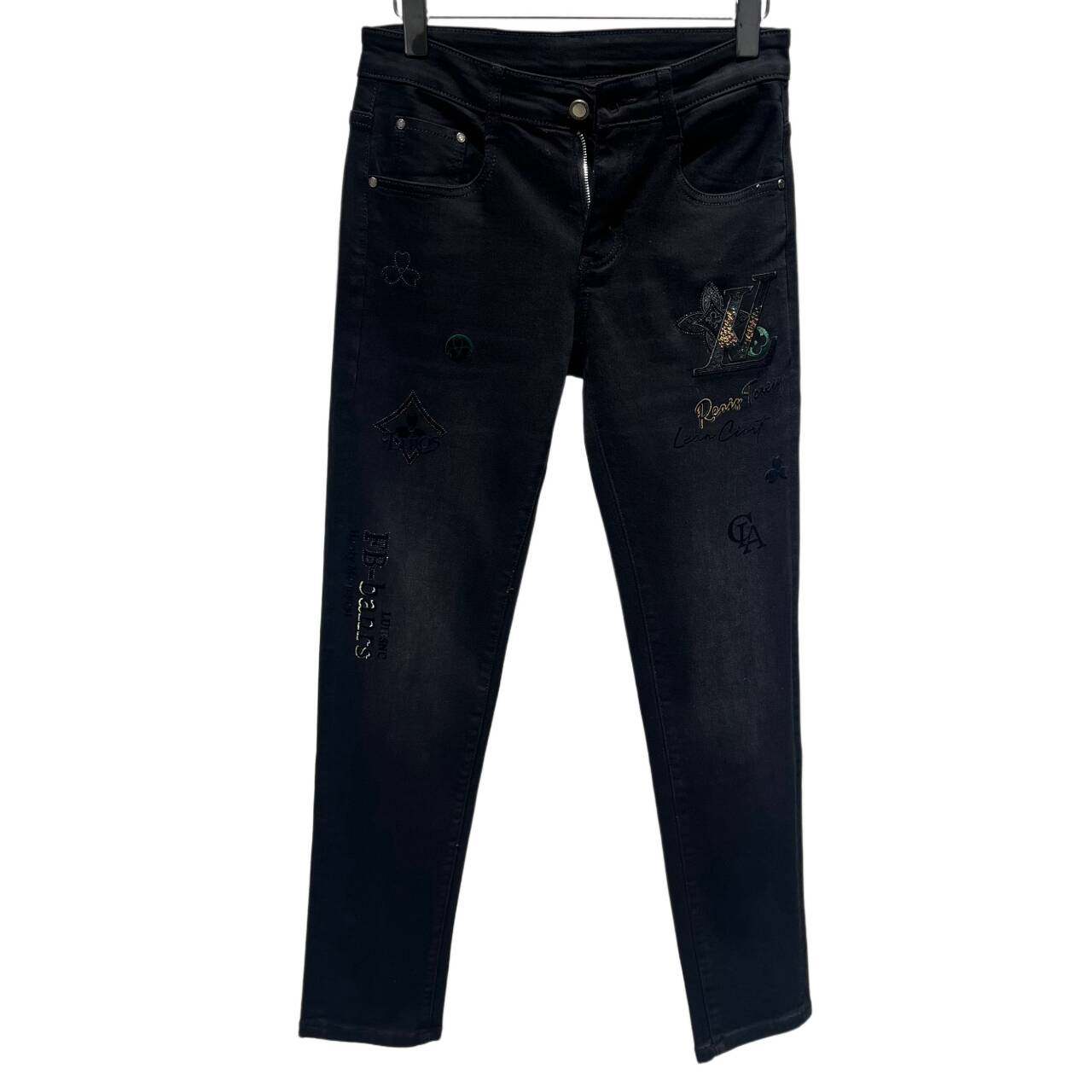 欧洲站秋冬季男士牛仔裤小脚修身潮流时尚磨毛加绒刺绣休闲长裤子