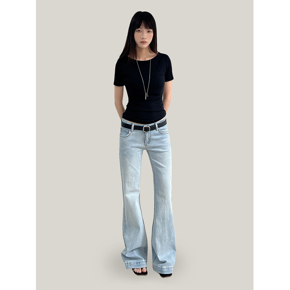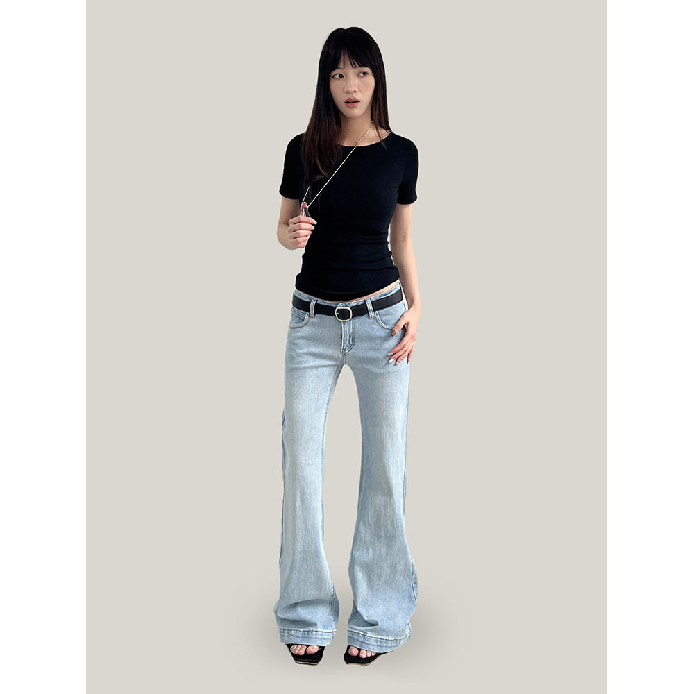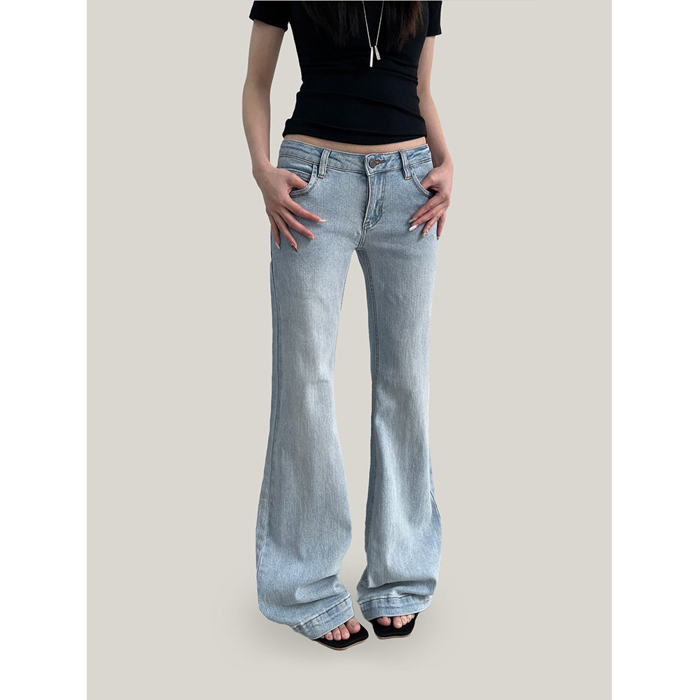 Ademe新款2026春季复古街头微喇牛仔裤女微弹修身显瘦长裤女cxw23