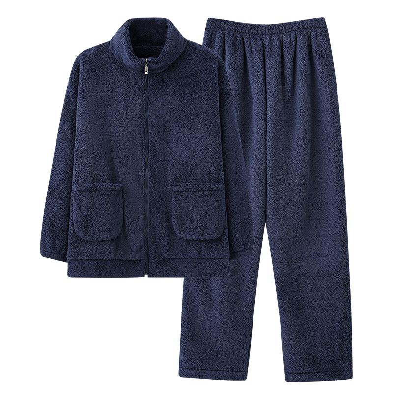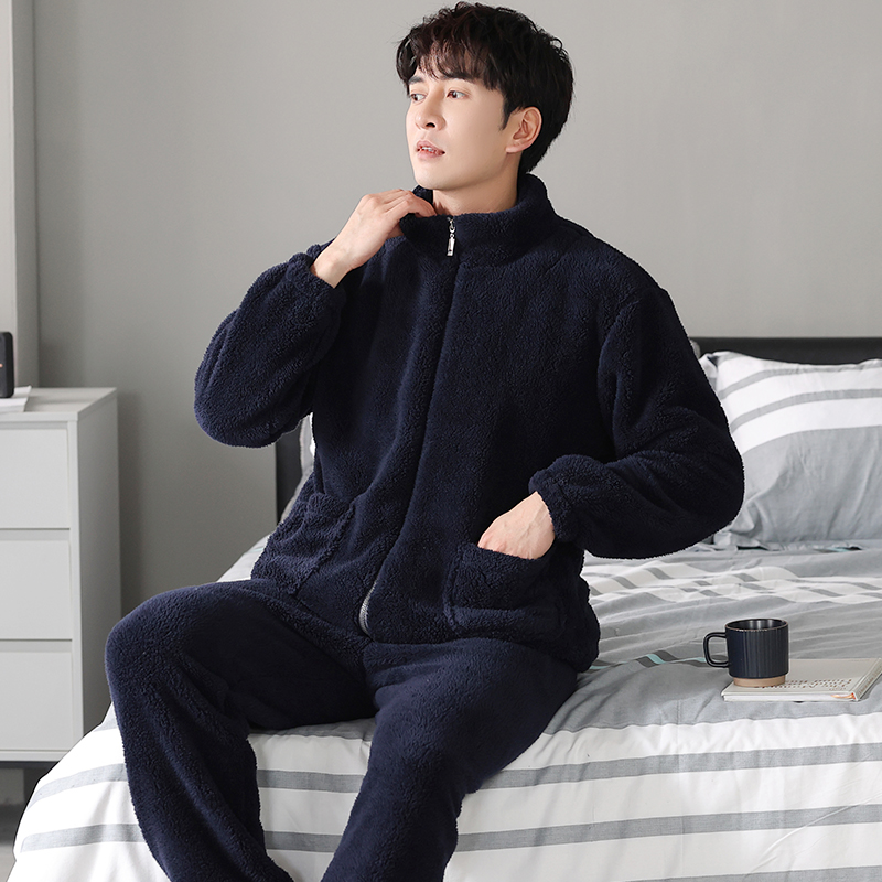 男士睡衣秋冬季珊瑚绒加厚加绒拉链青少年法兰绒套装可外穿家居服