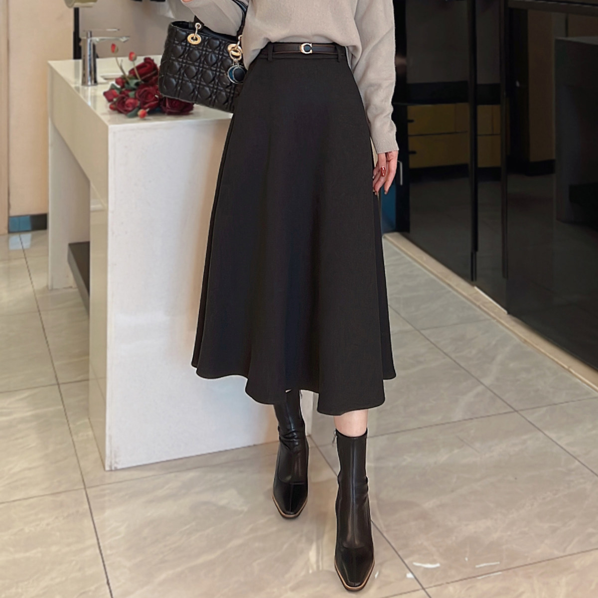 羊毛呢半身裙女秋冬2025新款高腰显瘦A字裙通勤气质呢子伞裙