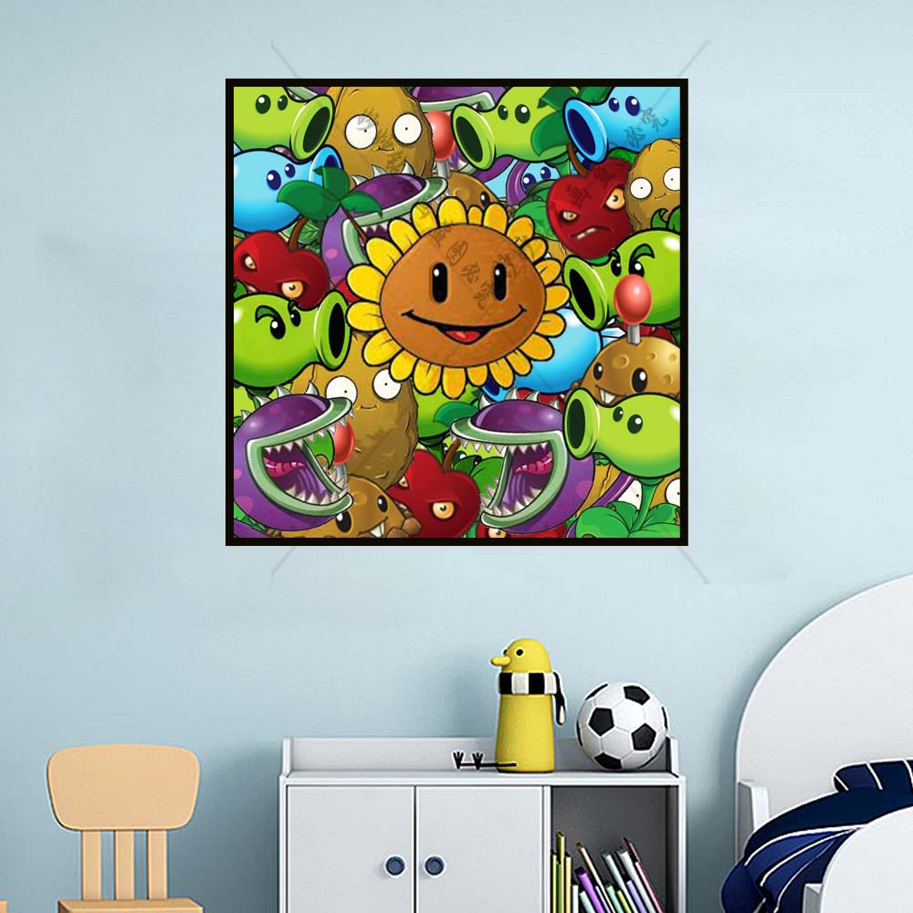 新品植物大战僵尸钻石画儿童房床头挂画男孩5DIY手工贴砖石十字绣