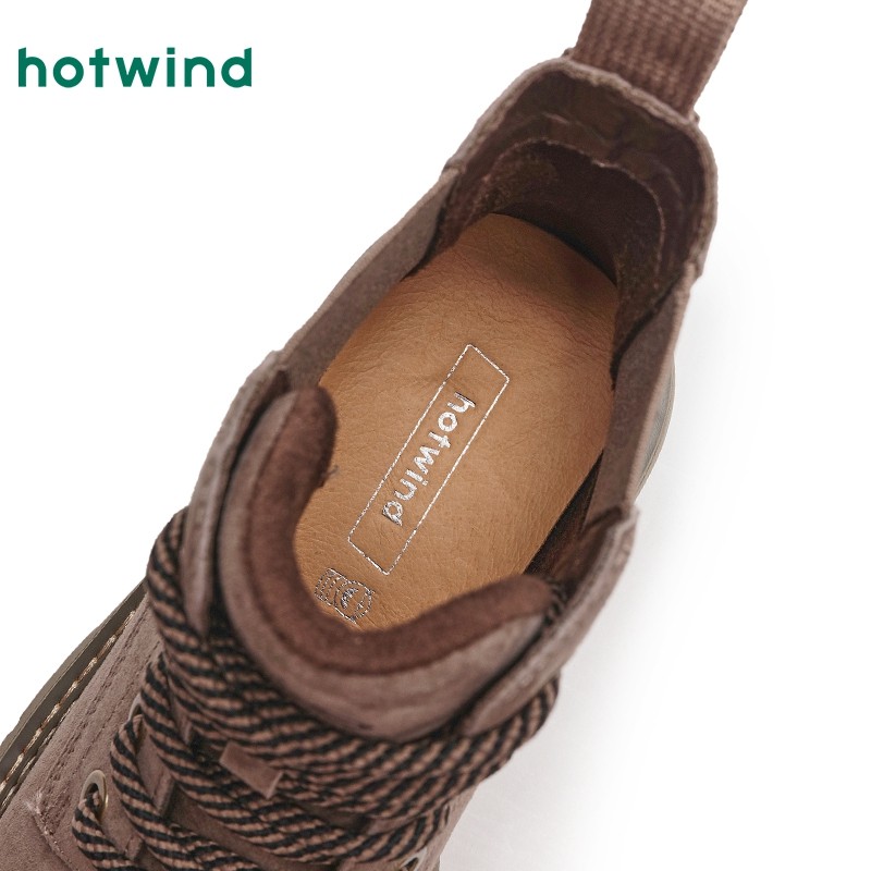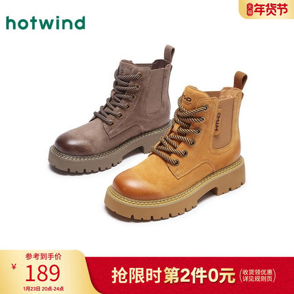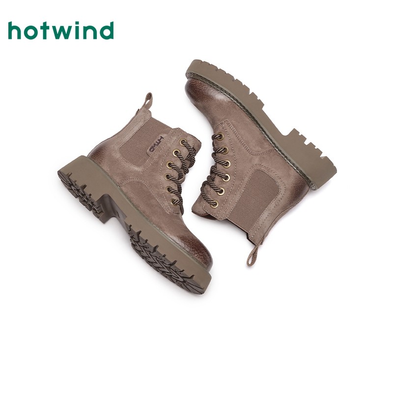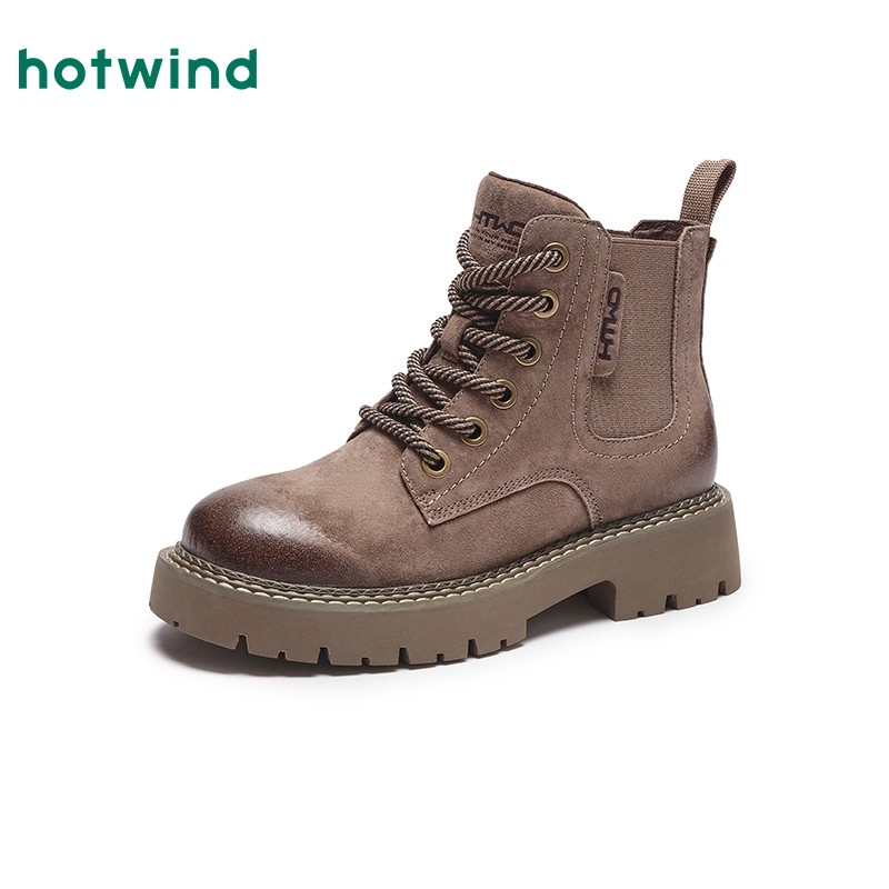 热风秋季新款女士时尚英伦复古休闲靴圆头系带百搭马丁靴女