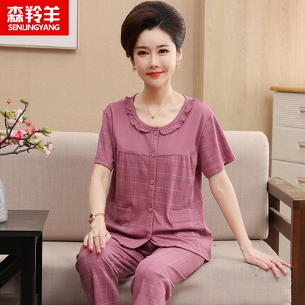 短袖长裤中老年人妈妈休闲款睡衣
