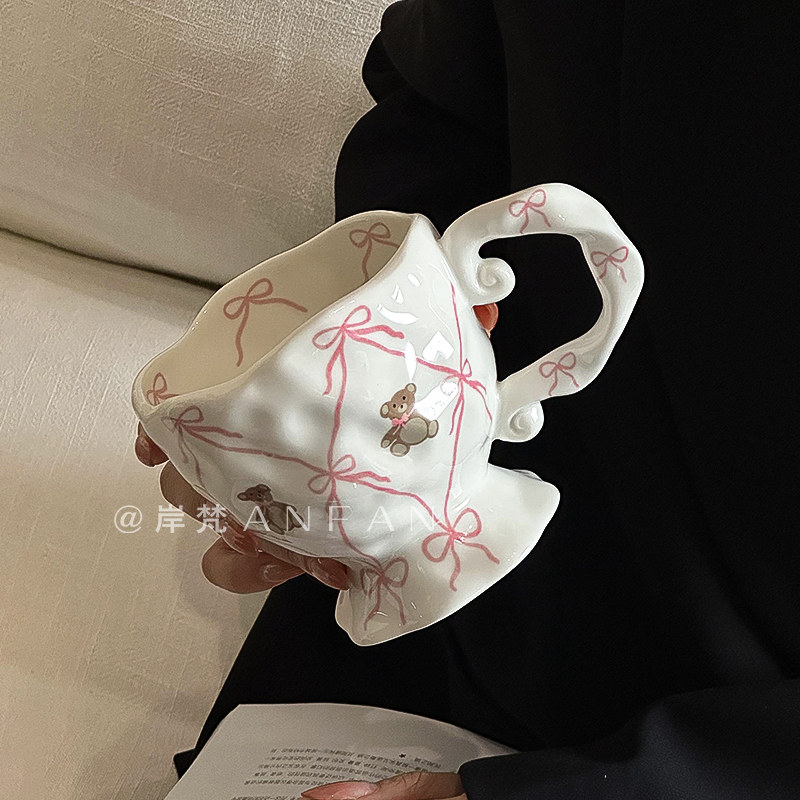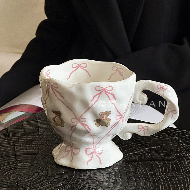 创意可爱陶瓷杯马克杯古风家用茶杯手绘插画丝蝶泰迪熊杯子伴手礼