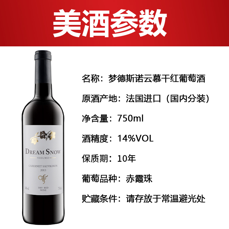 法国进口红酒14度赤霞珠干红葡萄酒750ml过节聚会送礼婚宴喜酒