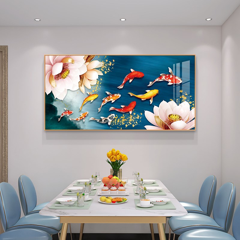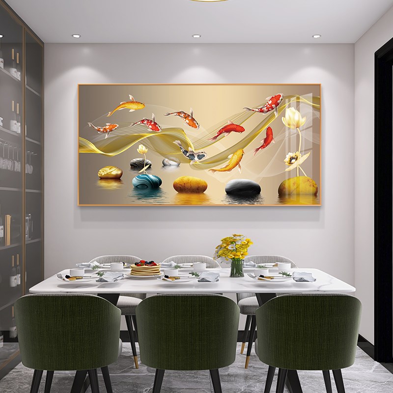 餐厅墙面装饰画歺厅客厅背景w墙挂画饭厅餐桌轻奢高级感九鱼图壁