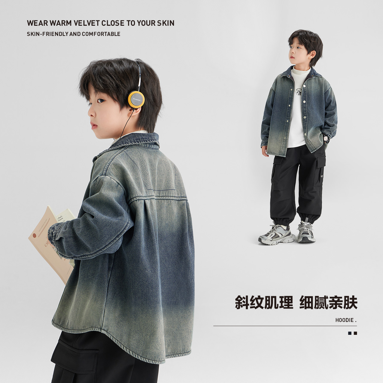 左西男童冬季新品牛仔衬衫外套