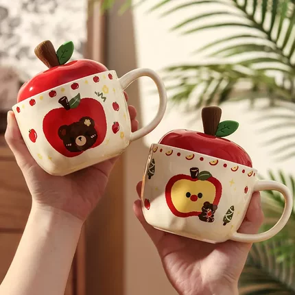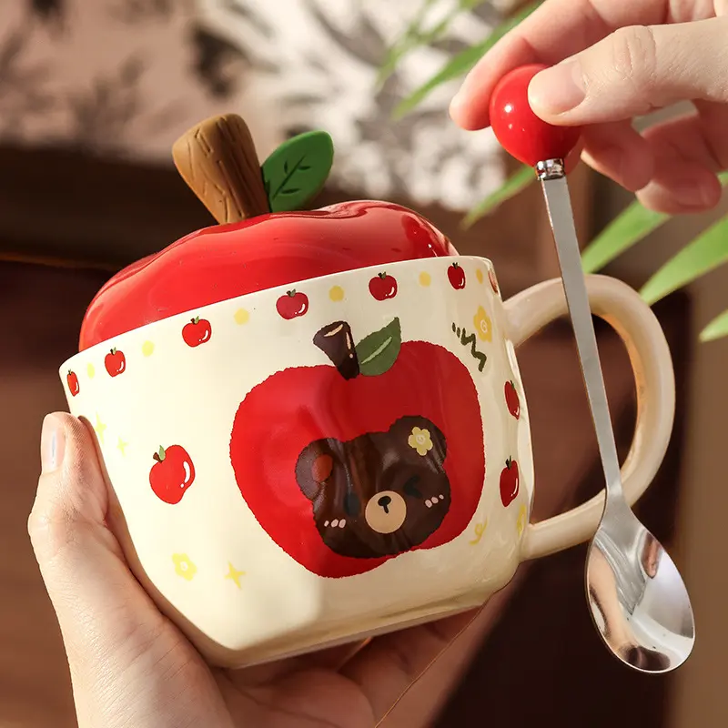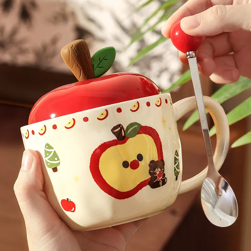 可爱圣诞节陶瓷杯带盖闺蜜实用礼盒装马克杯白瓷卡通耐高温单层