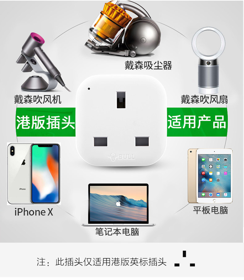 公牛英标转换插头港版转换器英国戴森吹风机英式插座switch转接头