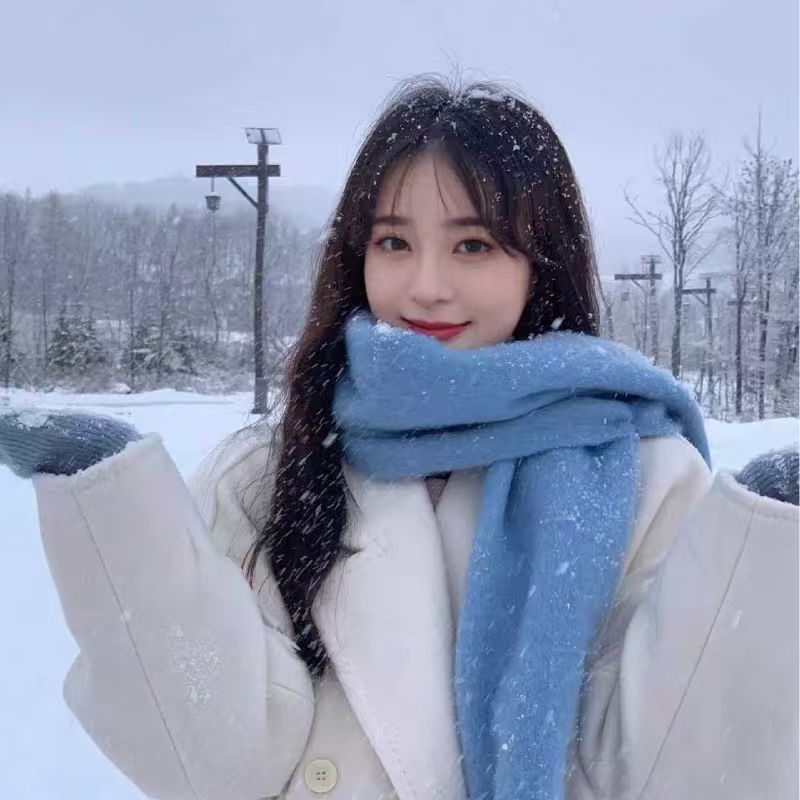 蓝色围巾女冬季氛围感加厚保暖纯色克莱因蓝马海毛围脖红色白色