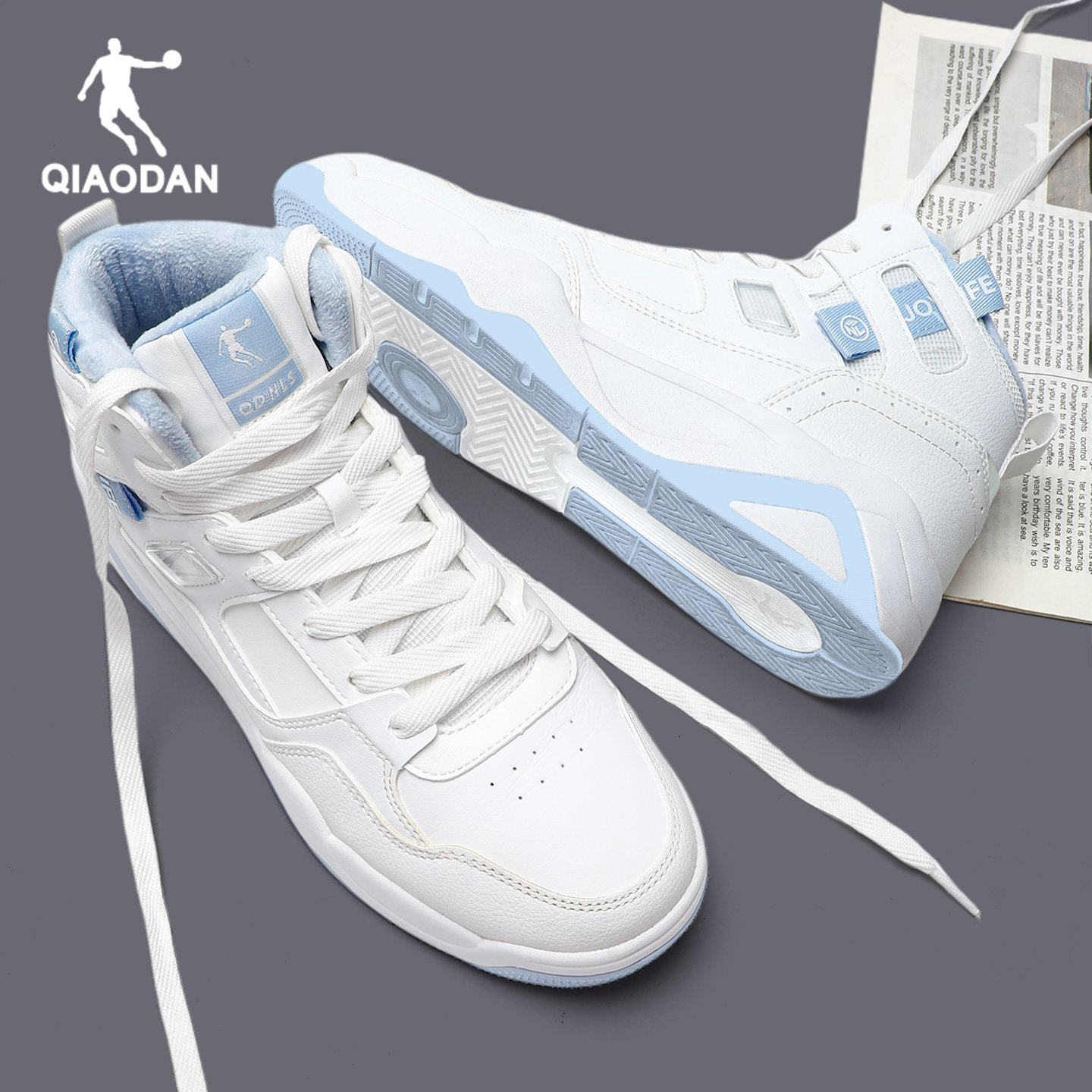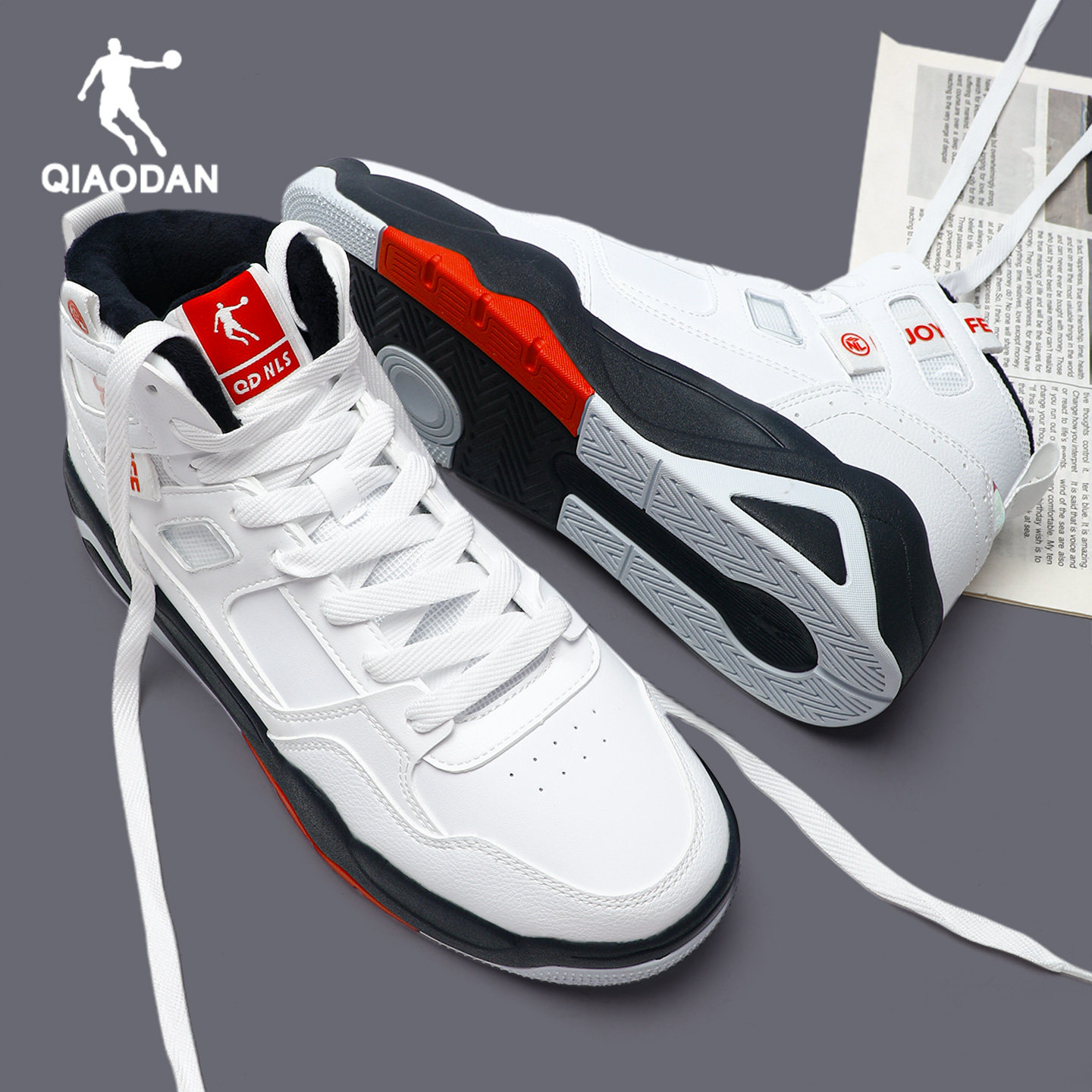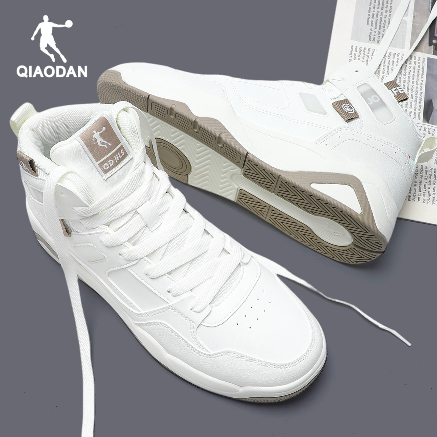 乔丹男鞋高帮板鞋2025冬季新款学生厚底增高小白鞋皮面防水运动鞋