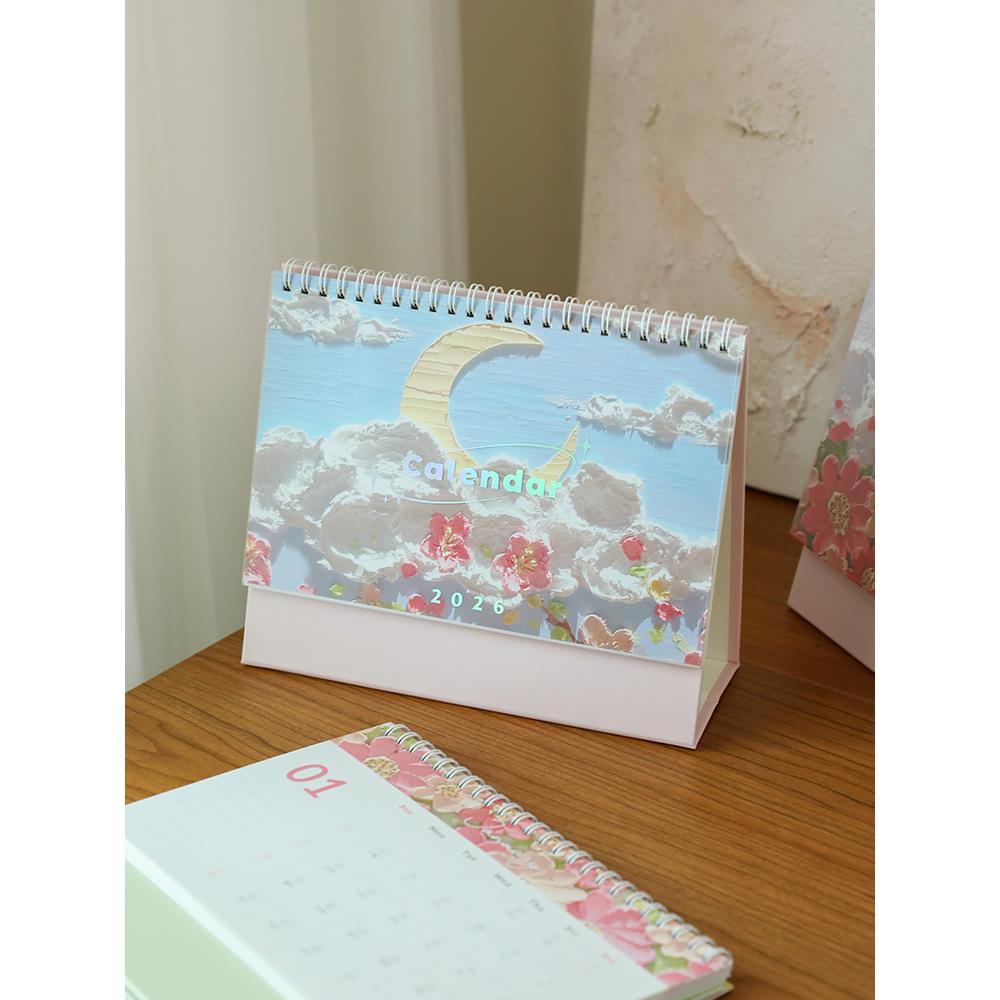 小日子不翻篇 2026年风景油画台历ins唯美花卉高颜值桌面日历摆件