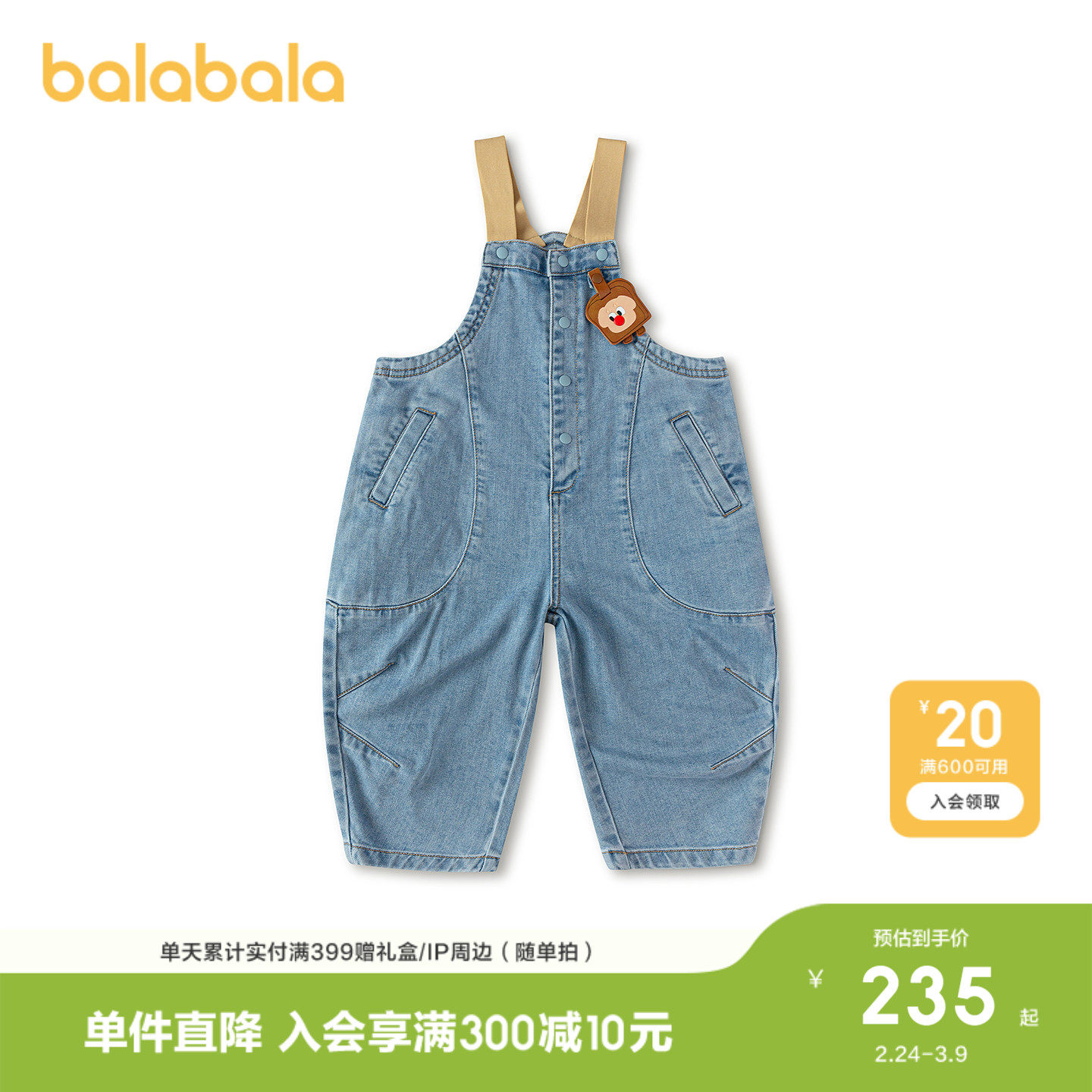 【商场同款】巴拉巴拉童装儿童长裤男童2026年新款春装宽松背带裤