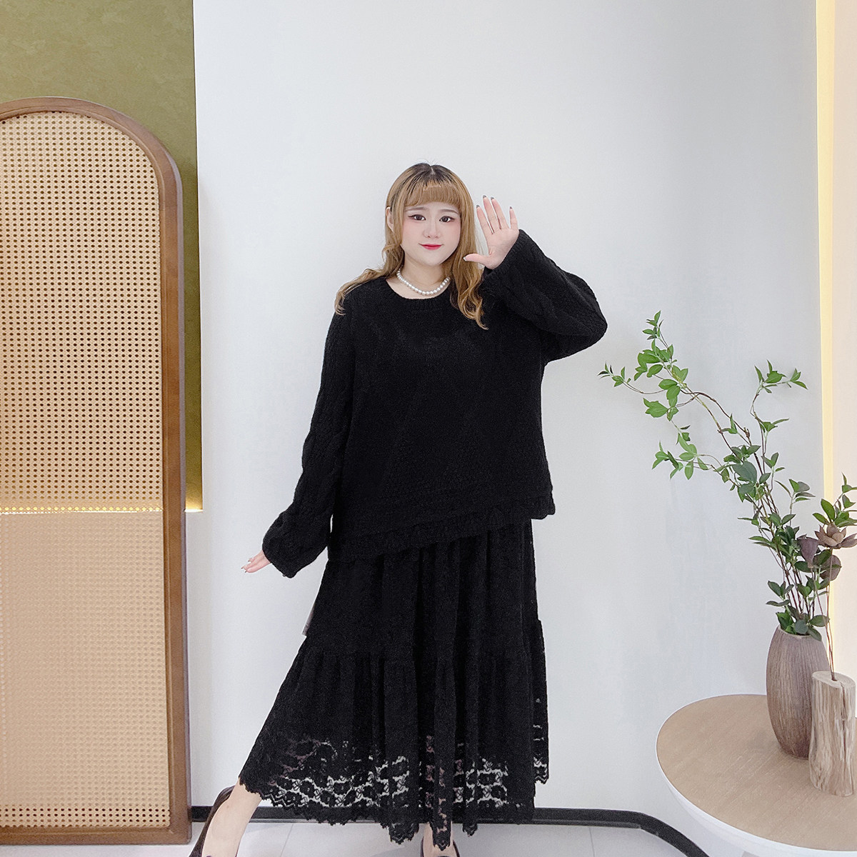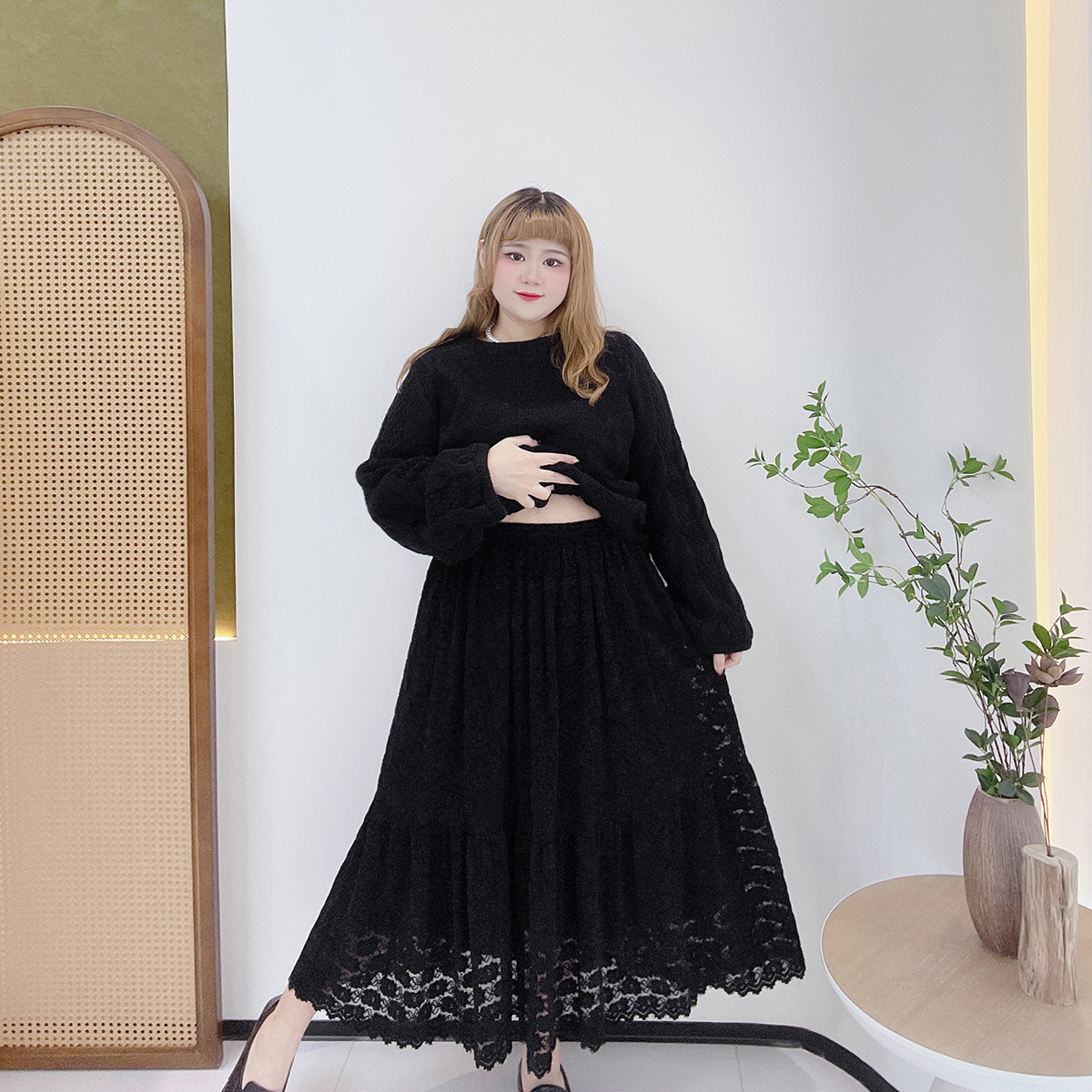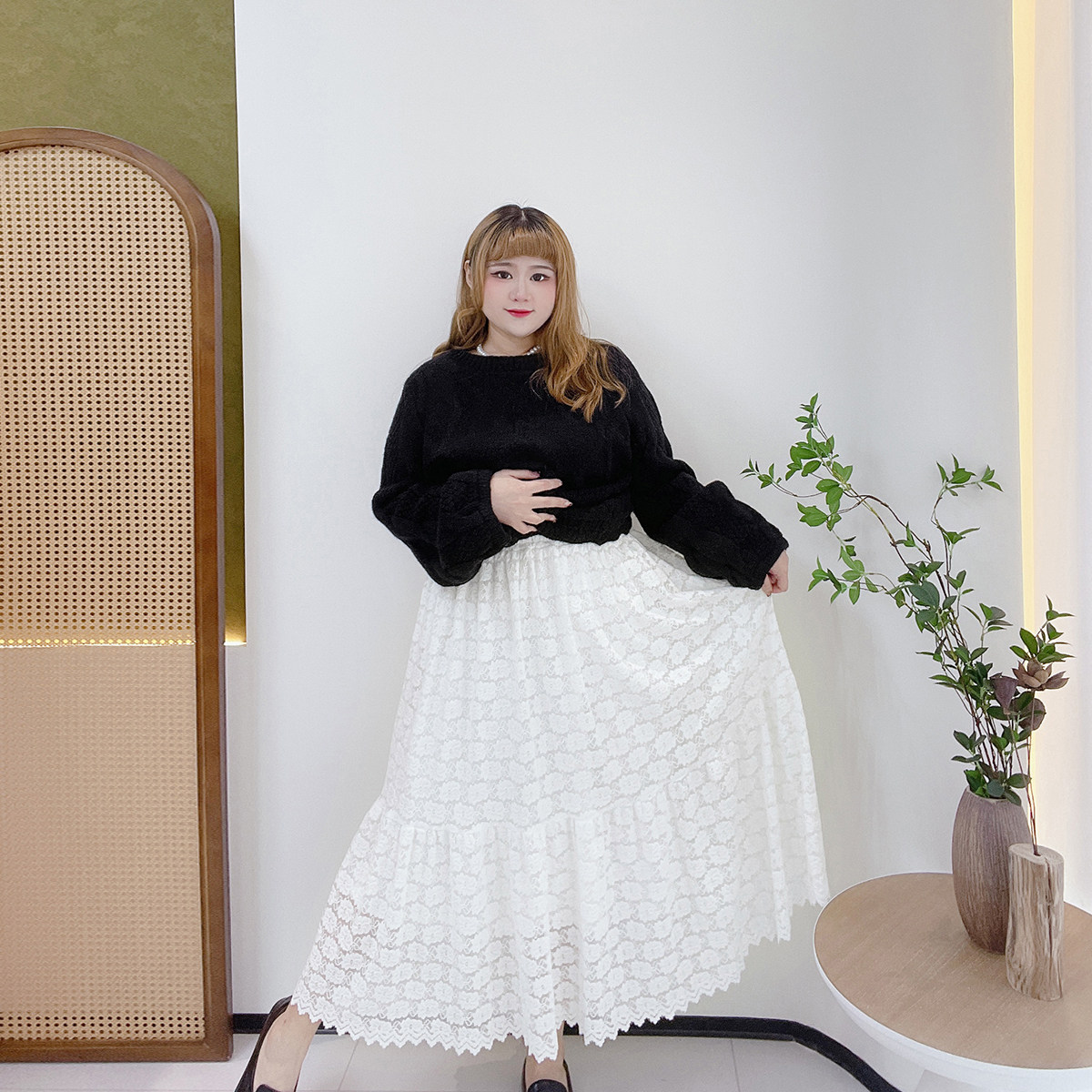 春季磨毛蕾丝裙子胖莹莹大码女装胖mm百搭遮肉长款花边鱼尾半身裙