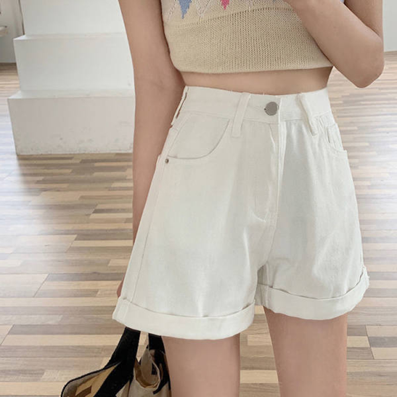 阔腿牛仔热裤女装夏季裤子2025新款高腰宽松显瘦卷边薄款直筒短裤