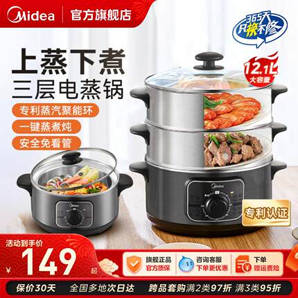美的多功能家用电蒸锅厨房蒸笼插电大容量全自动多层蒸蛋菜神器锅