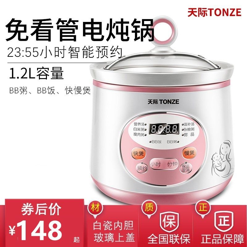 精选天际12DD全自动宝宝bb煲炖汤小白瓷迷你婴儿电煮粥锅炖锅1.2L