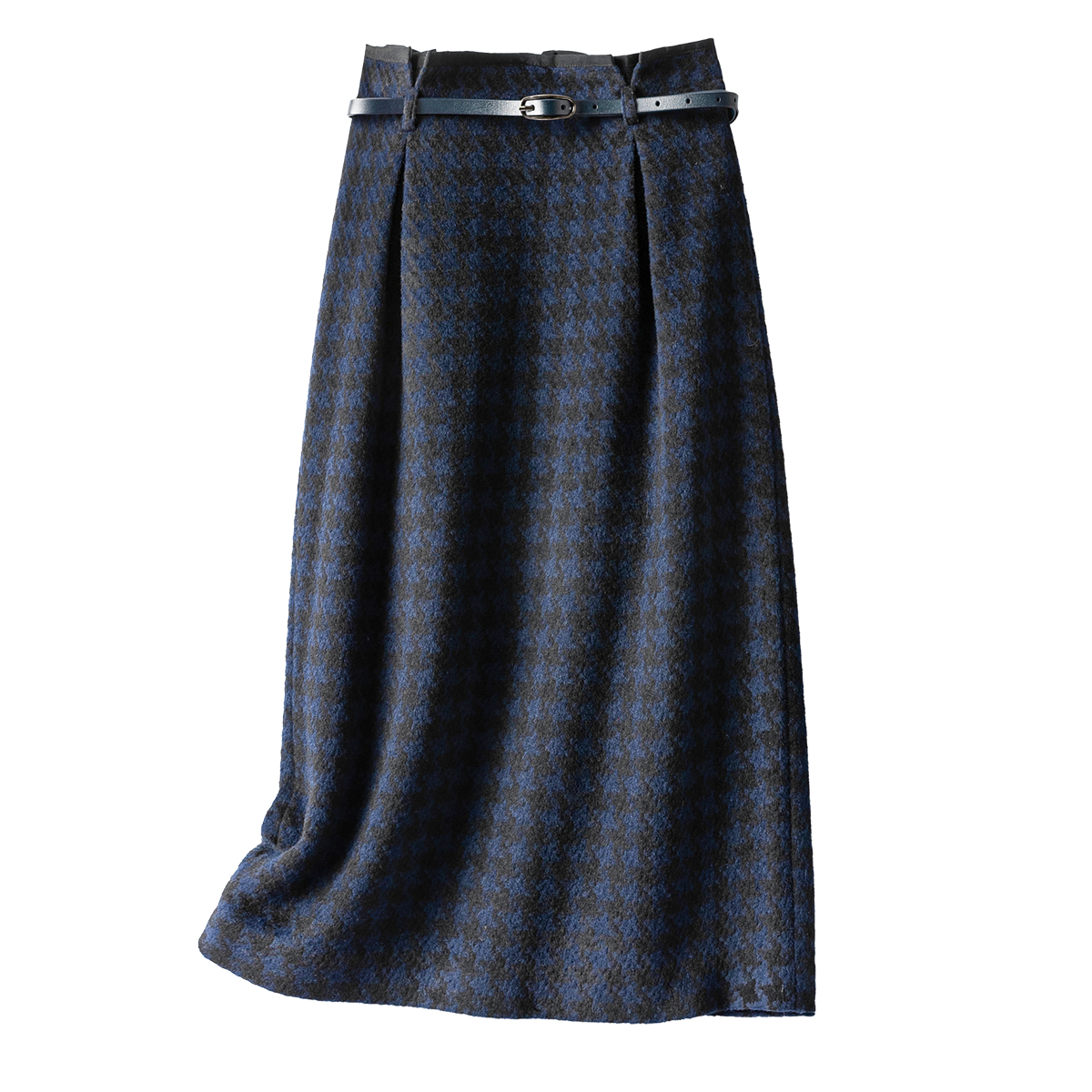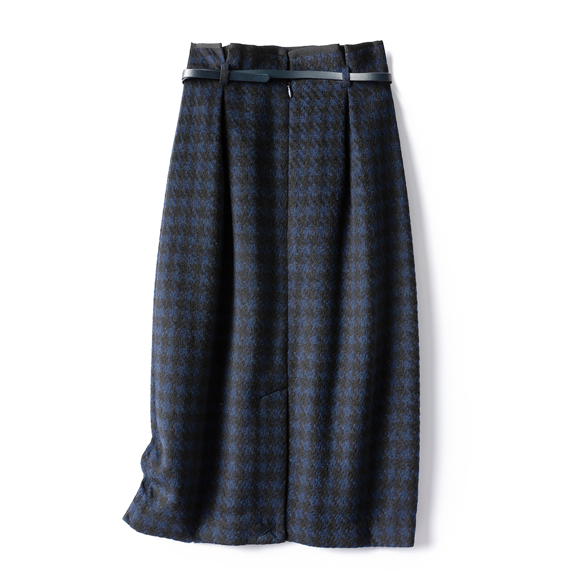 秋冬时千鸟格薄羊毛呢半身裙女 休闲百搭直筒包臀裙子 送腰带!