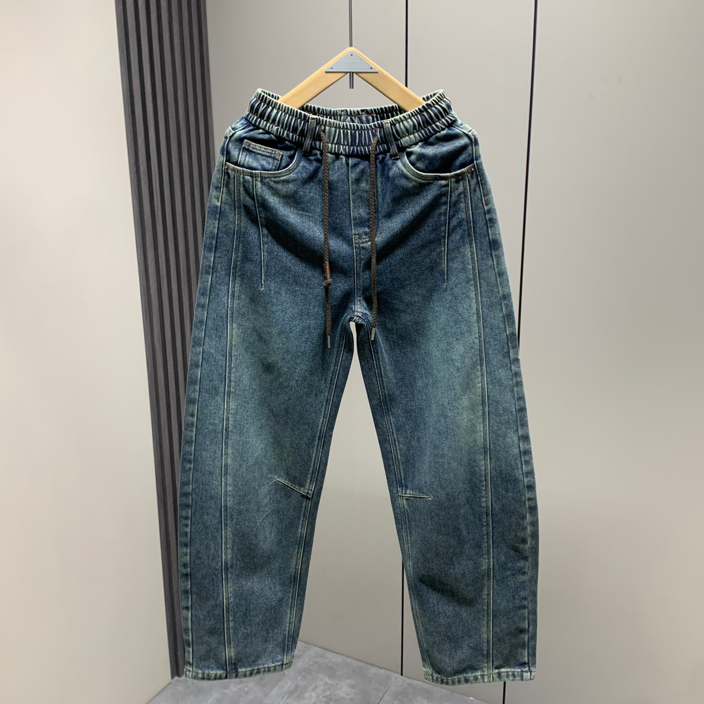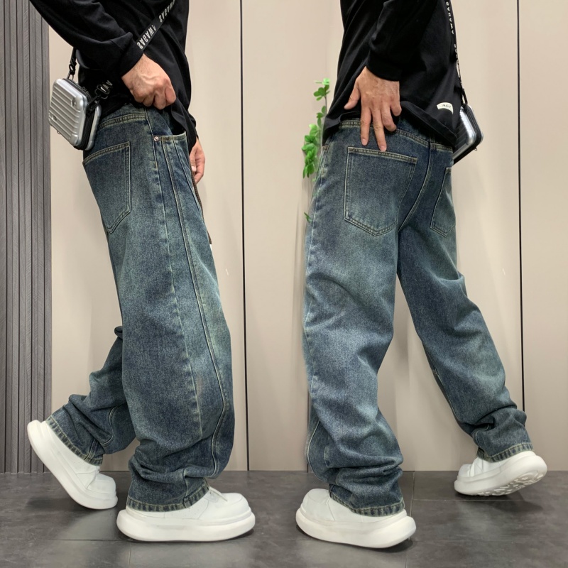 加绒2025秋冬季痞帅复古牛仔裤男新款宽松直筒商务弹力休闲阔腿裤