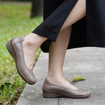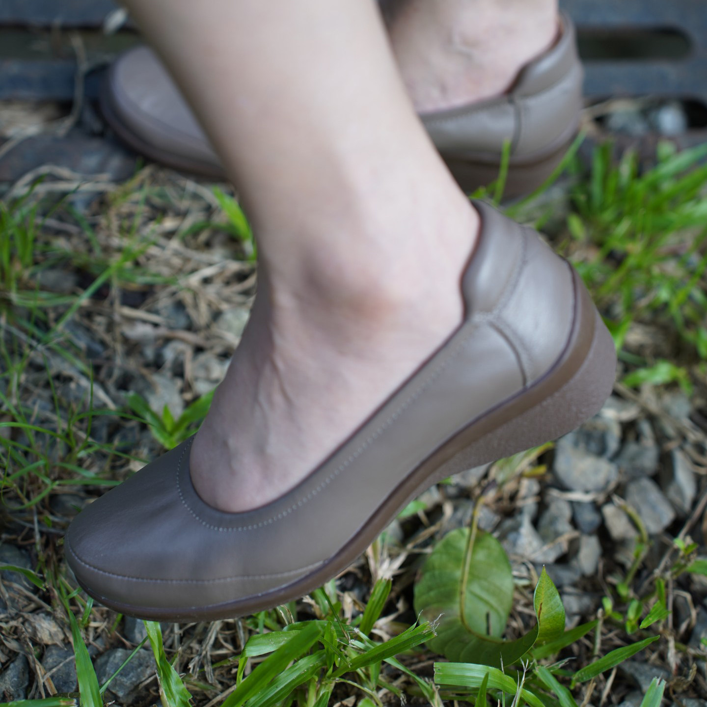壹家shoes040062羊皮坡跟散步鞋平底百搭圆头浅口单鞋女2025新款