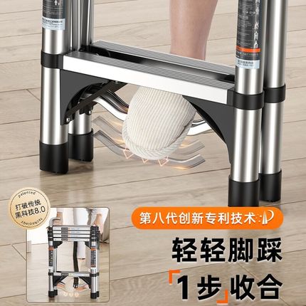 奥鹏踩踩乐梯子人字铝合金加厚家用折叠多功能伸缩室内不锈钢楼梯