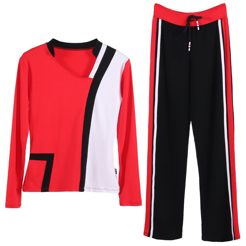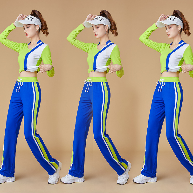 日本品质广场舞服装新款套装女秋冬季加厚莫代尔运动健身操跳舞蹈