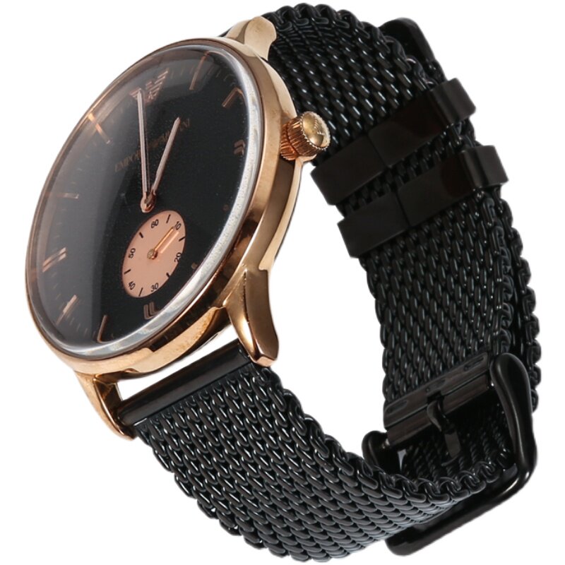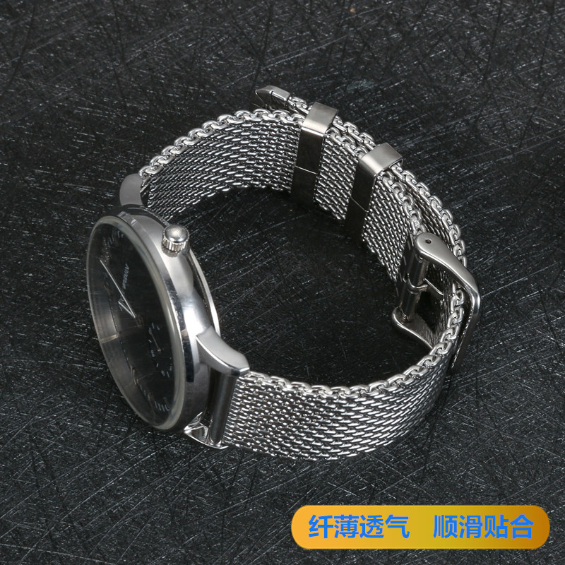 不锈钢手表带针扣透气网带代用阿玛尼米兰钢丝精钢男表链配件22mm
