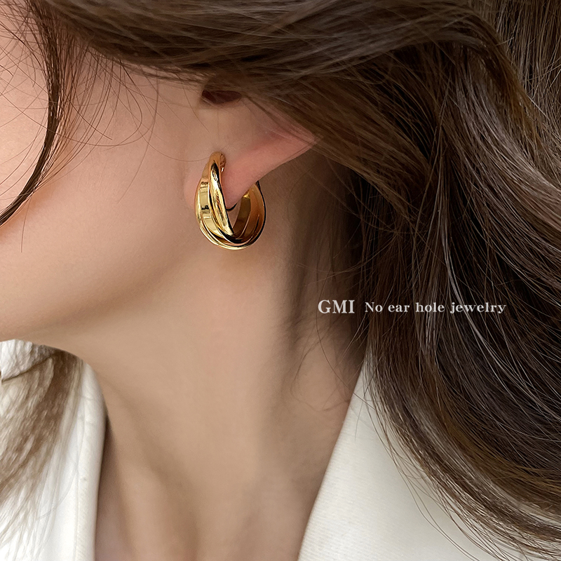 GMI无耳洞金色交叉金属耳夹女欧美轻奢耳饰小众高级感蚊香盘耳环