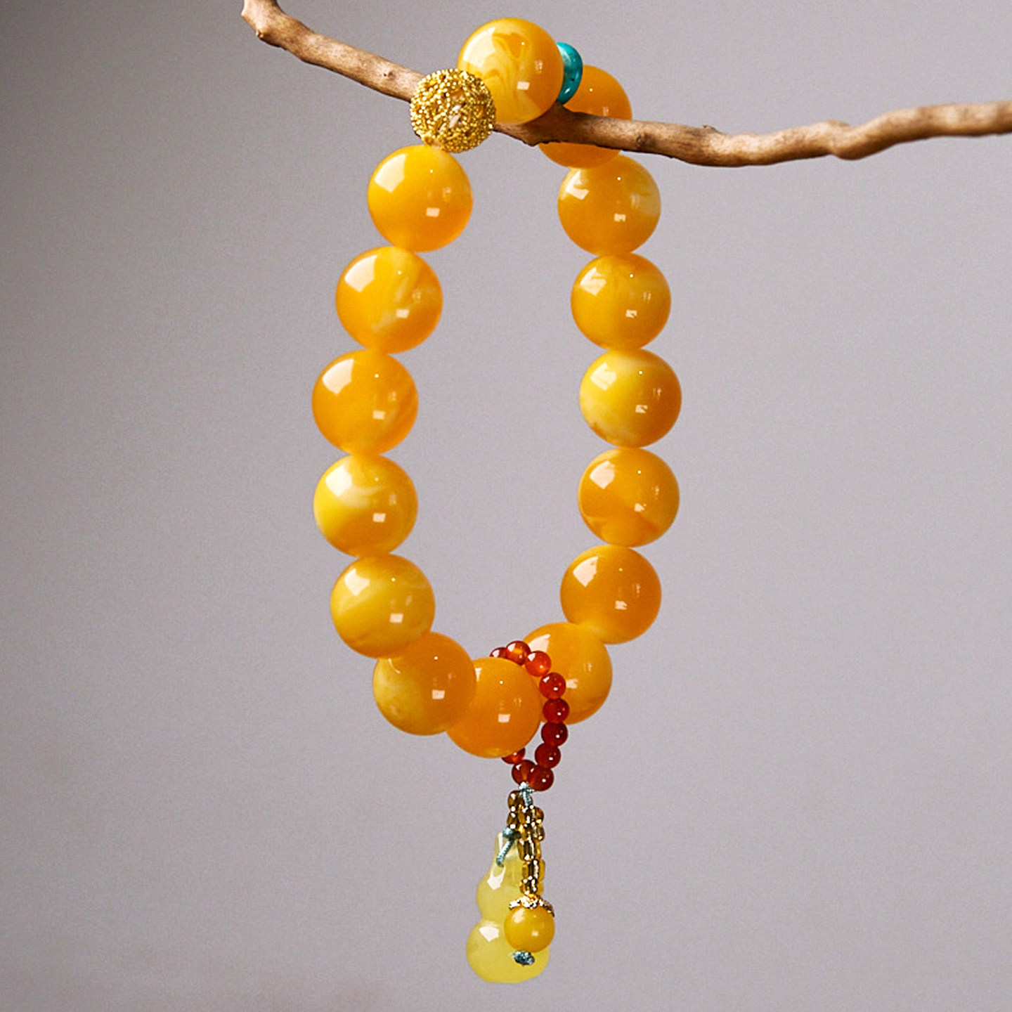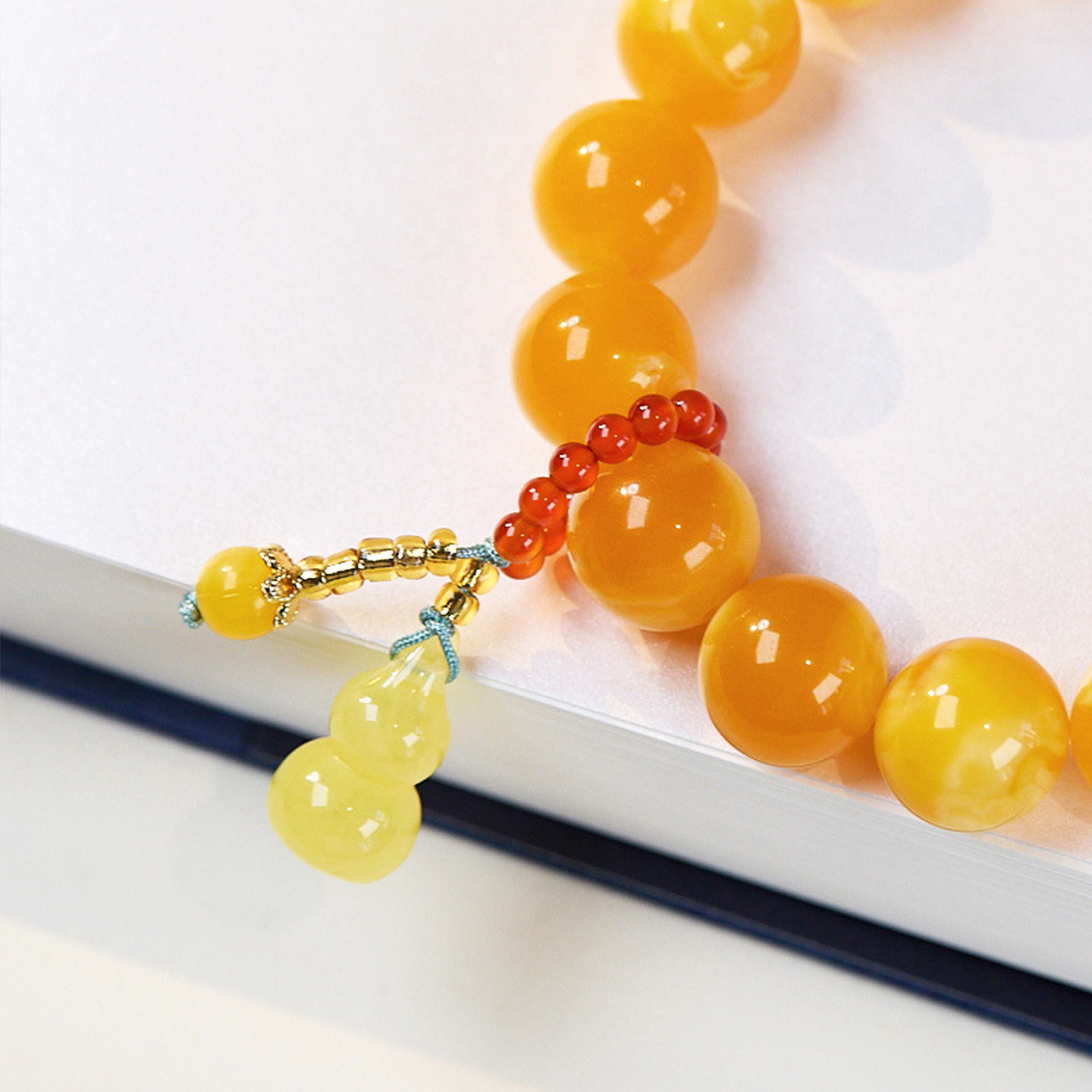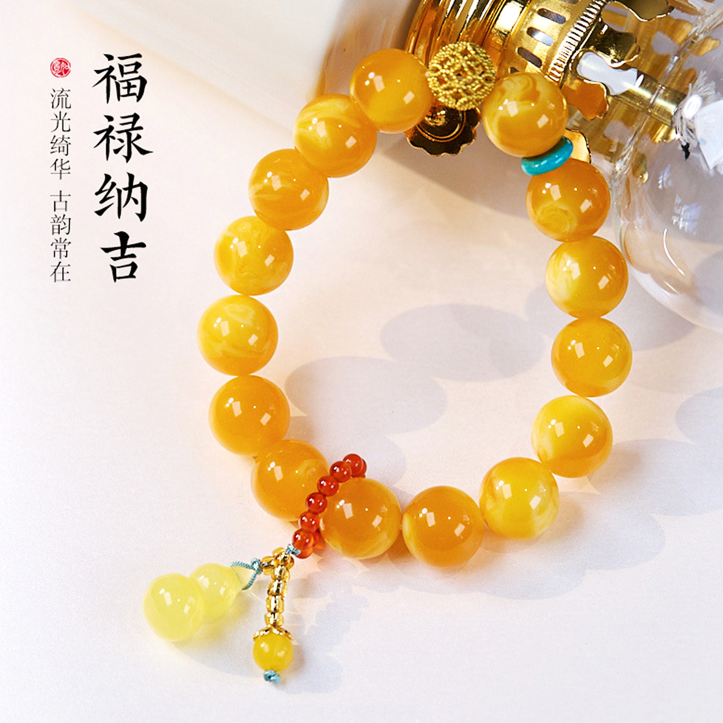 天然蜜蜡手串女款鸡油黄琥珀红玛瑙串珠珠子葫芦多圈转运手链叠戴