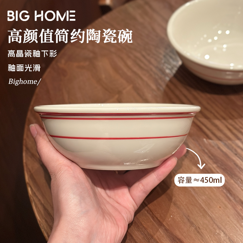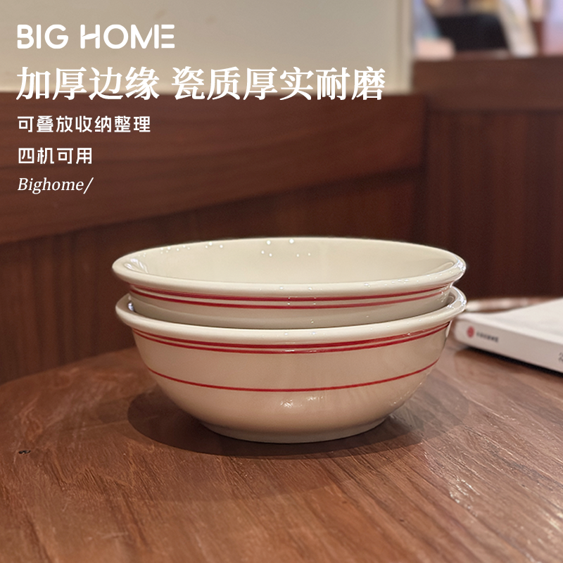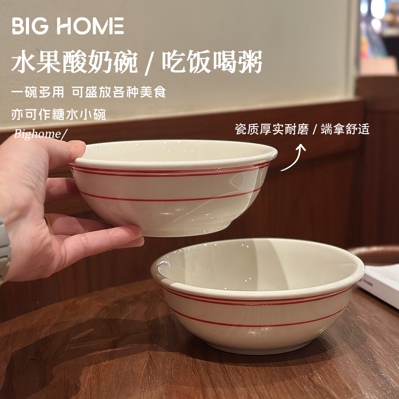 红线小边碗!德士敦5.8英寸吃饭碗喝粥酸奶碗釉下彩陶瓷糖水小碗
