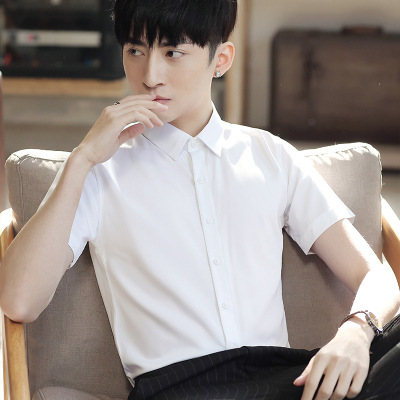 春秋季男士长袖衬衫韩版修身职业正装白衬衣商务休闲纯色帅气寸衫