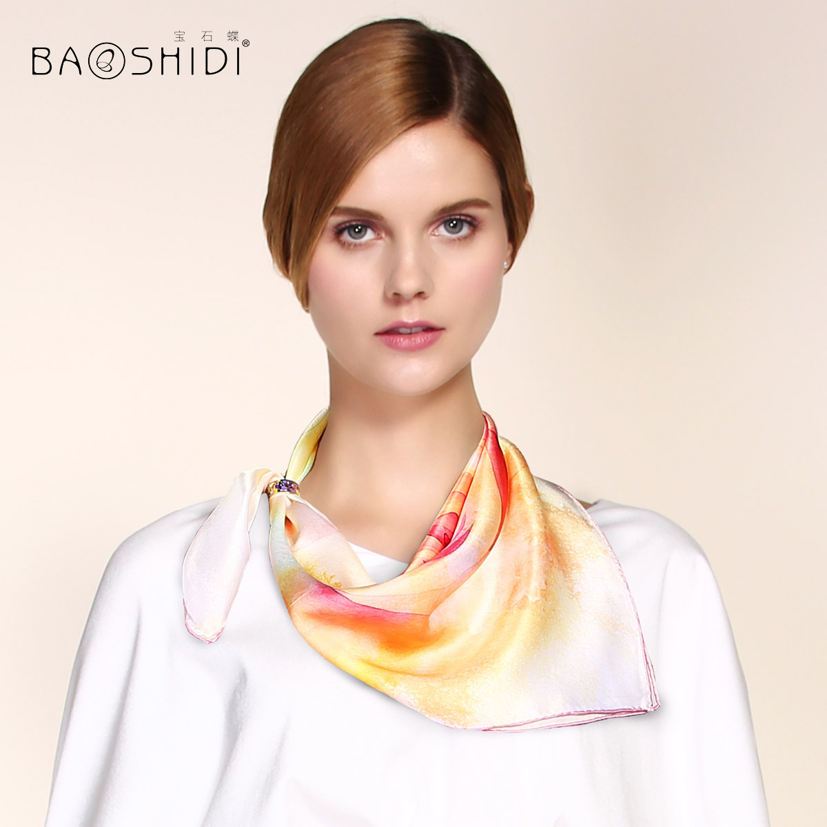宝石蝶真丝小方巾秋冬季女士重磅桑蚕丝韩版百搭小方丝巾围巾