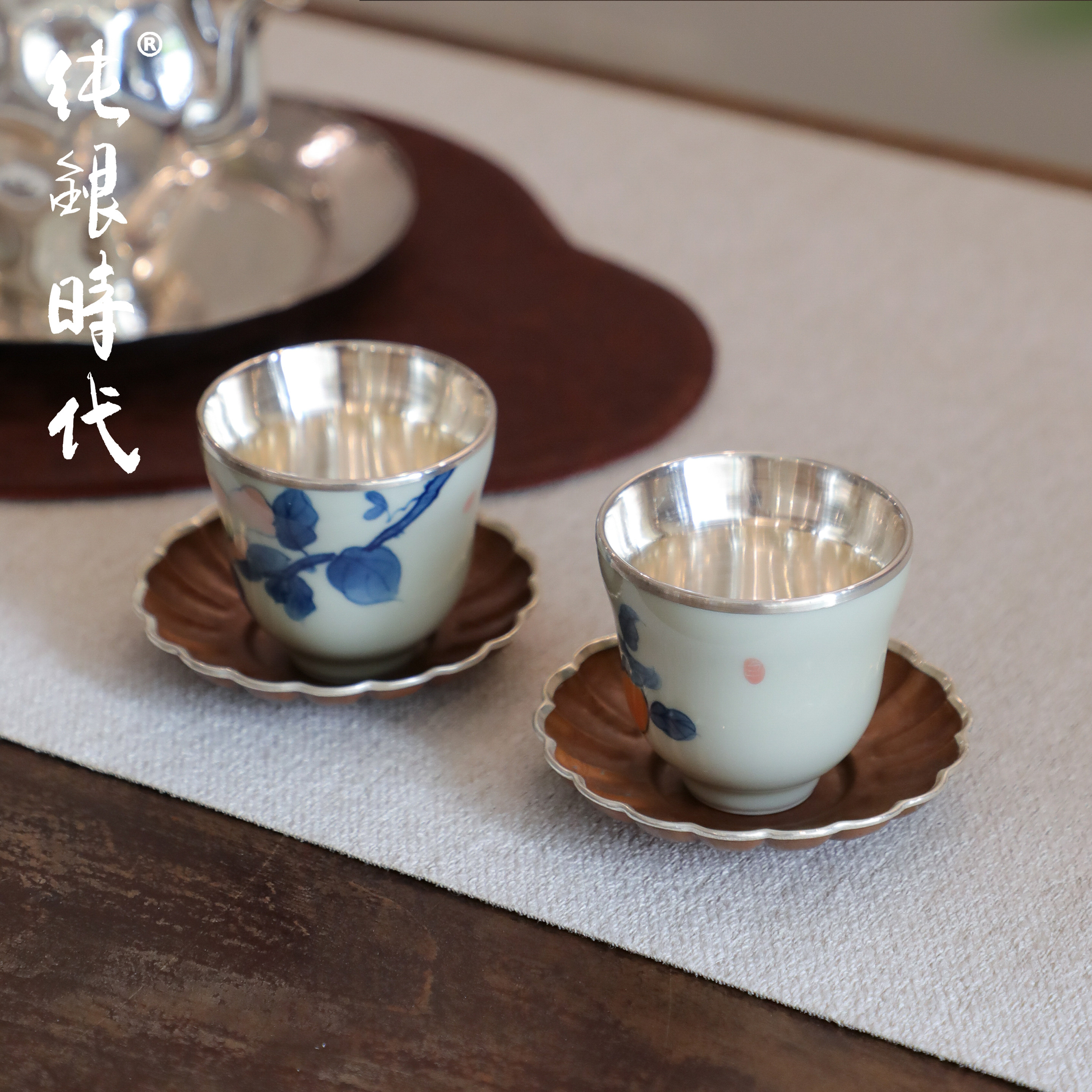 纯银时代银边紫铜手工茶托杯托