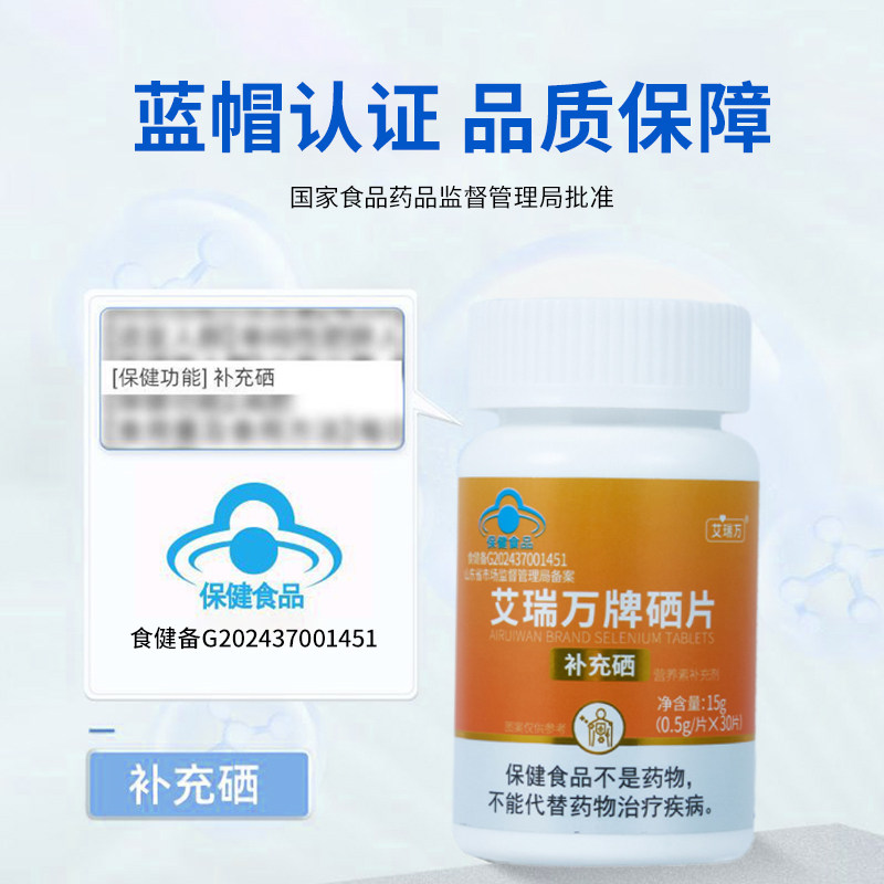 艾瑞万硒片硒富硒酵母有机硒复合硒片缺硒补硒90μg/粒|实发3瓶