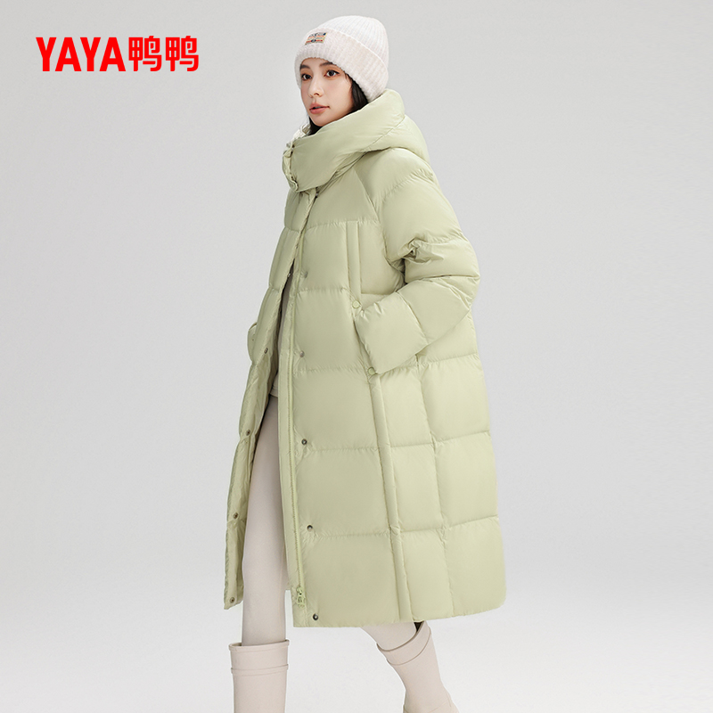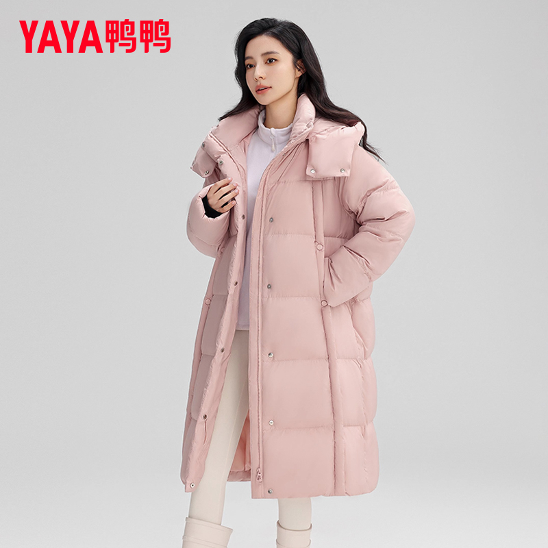鸭鸭长款过膝羽绒服女连帽保暖
